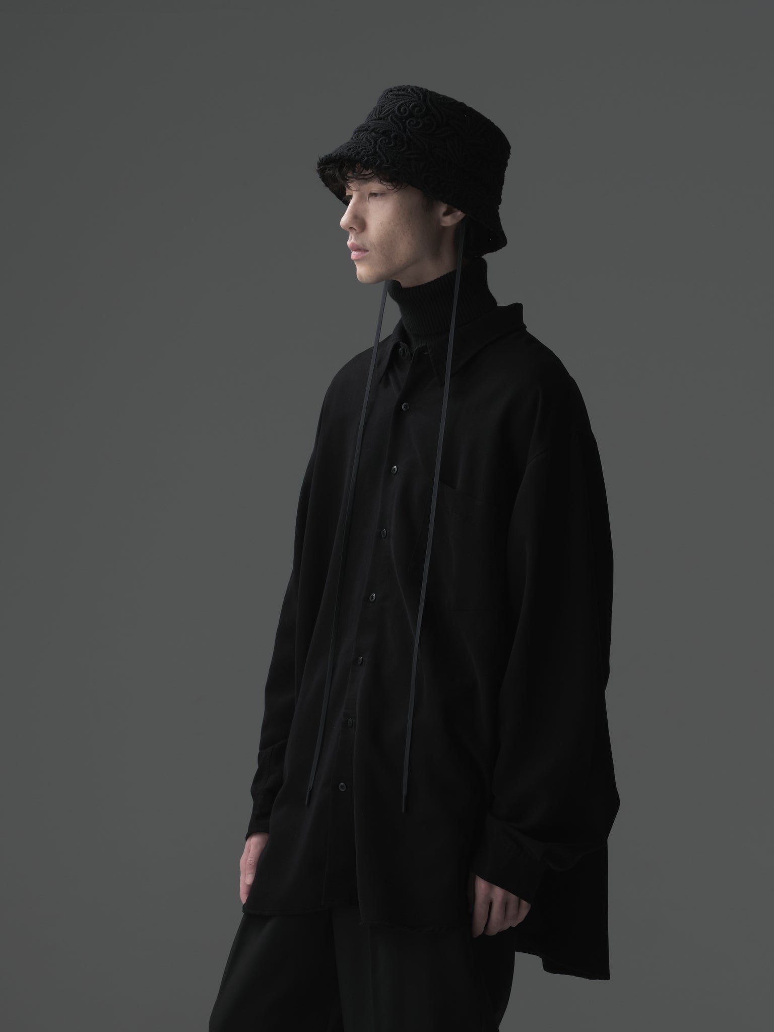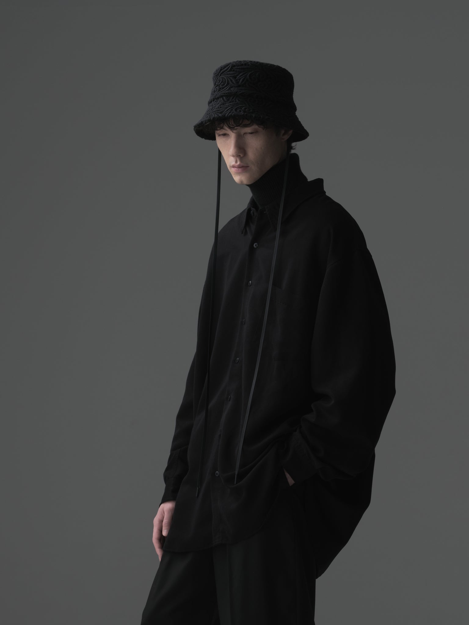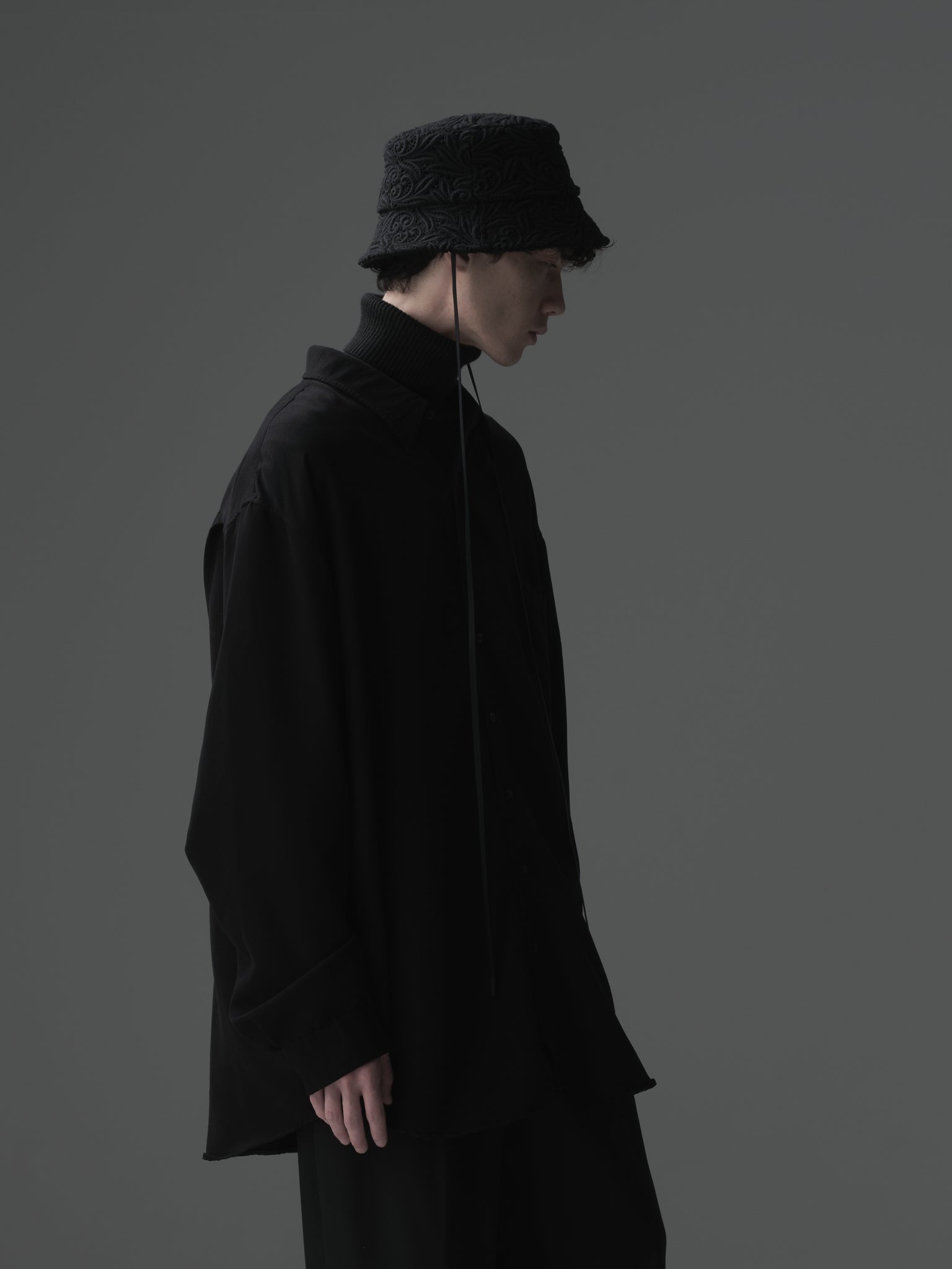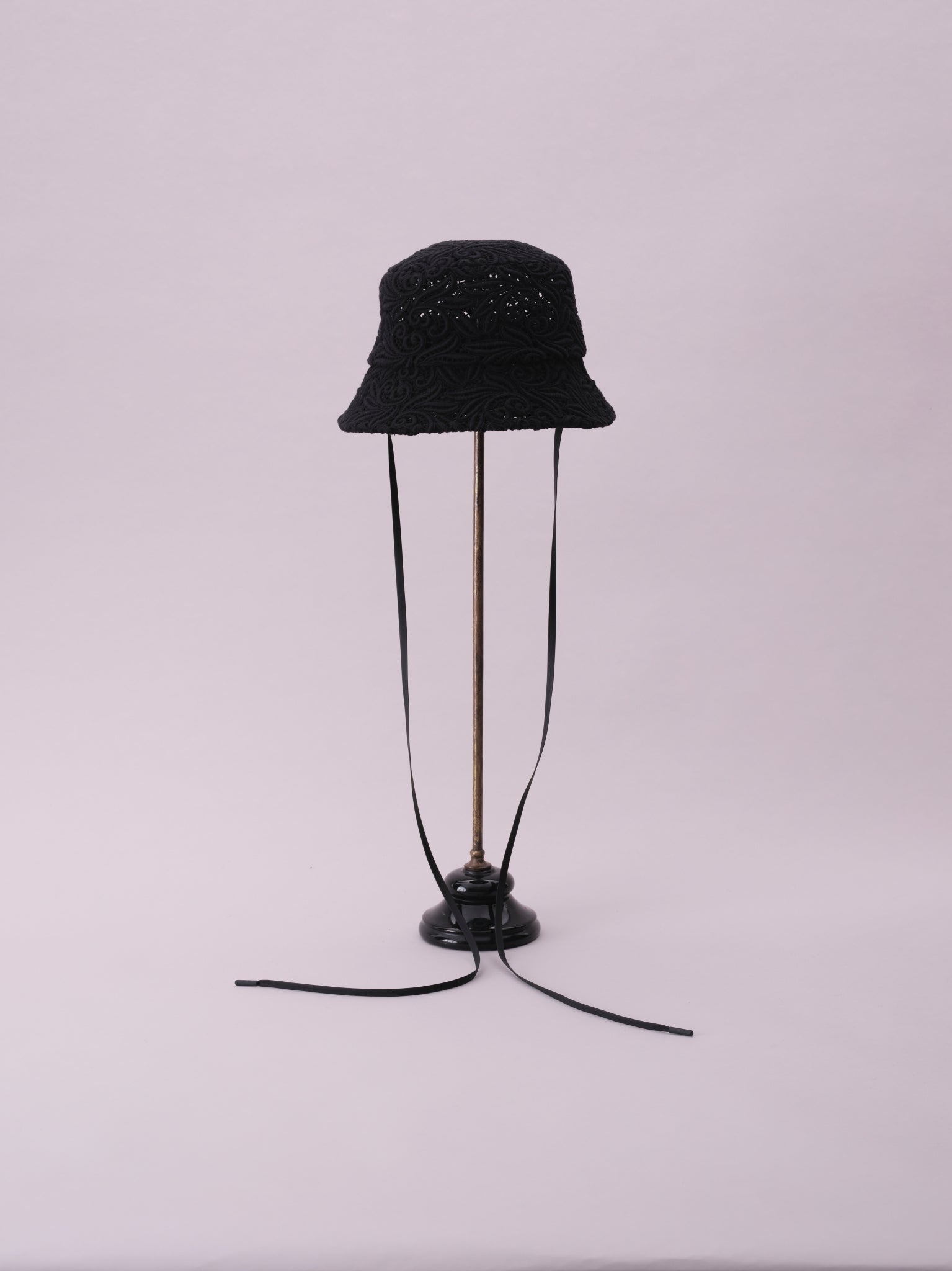 ボリュームのあるラグジュアリーなケミカルレースを縫製し、芯を使わず丁寧に一つ一つ型入れして仕上げた、ハットはまるでクチュールのようです。レースの透け感が落とす影にラグジュアリーさが漂っています。リボン自体も取り外し可能なので気分に合わせてハットのみの使用も可能です。
