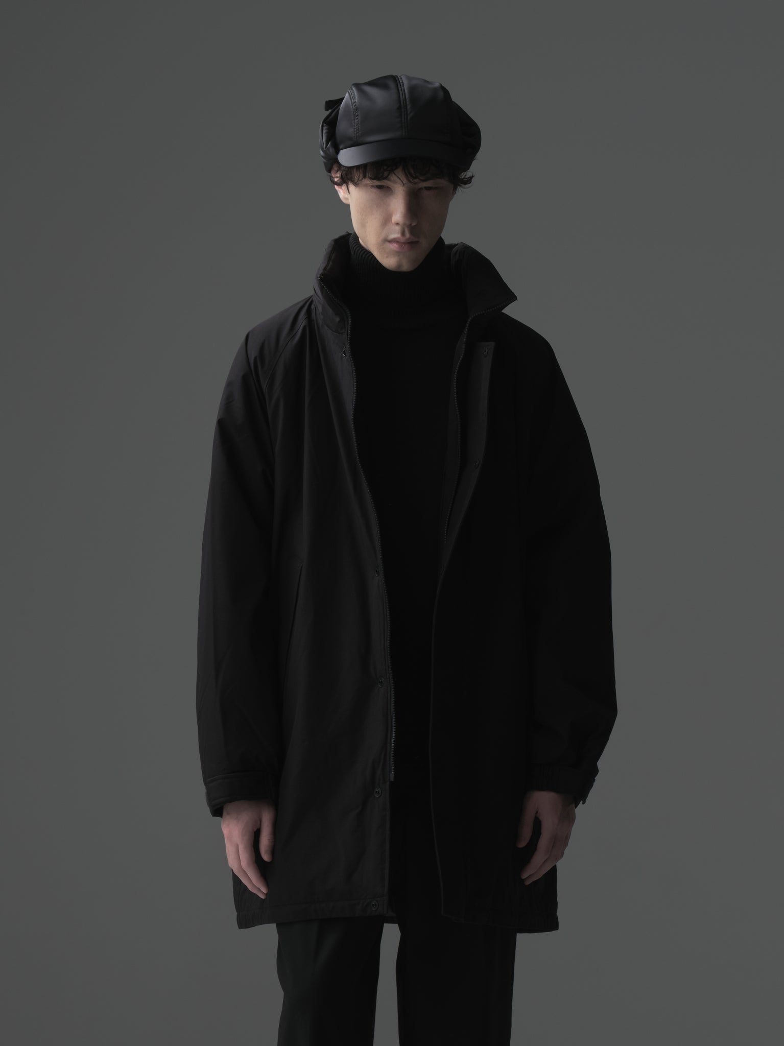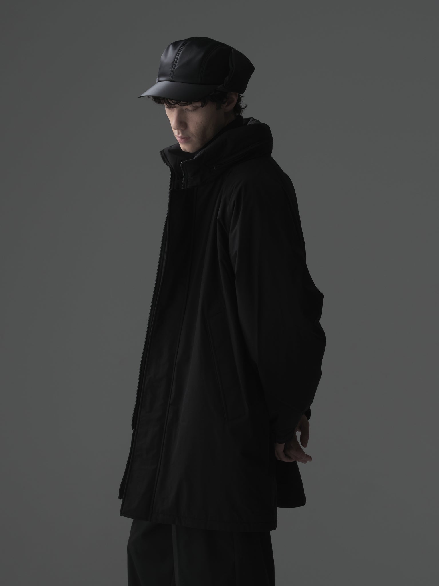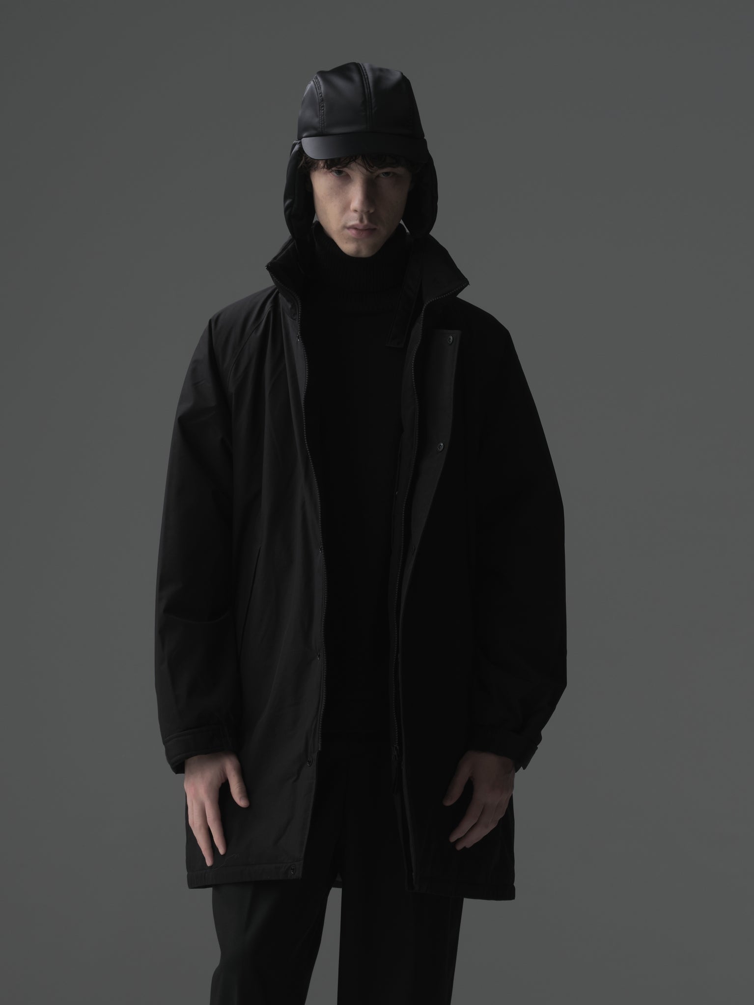ベースはリモンタ生地にシンサレート中綿芯を組み合わせた、モードでありながら暖かく柔らかな素材を使用しています。内側も同素材のナイロンでソリッドなデザインに落とし込みました。DARK GREENは大理石をイメージし、オリジナルでプリントしています。