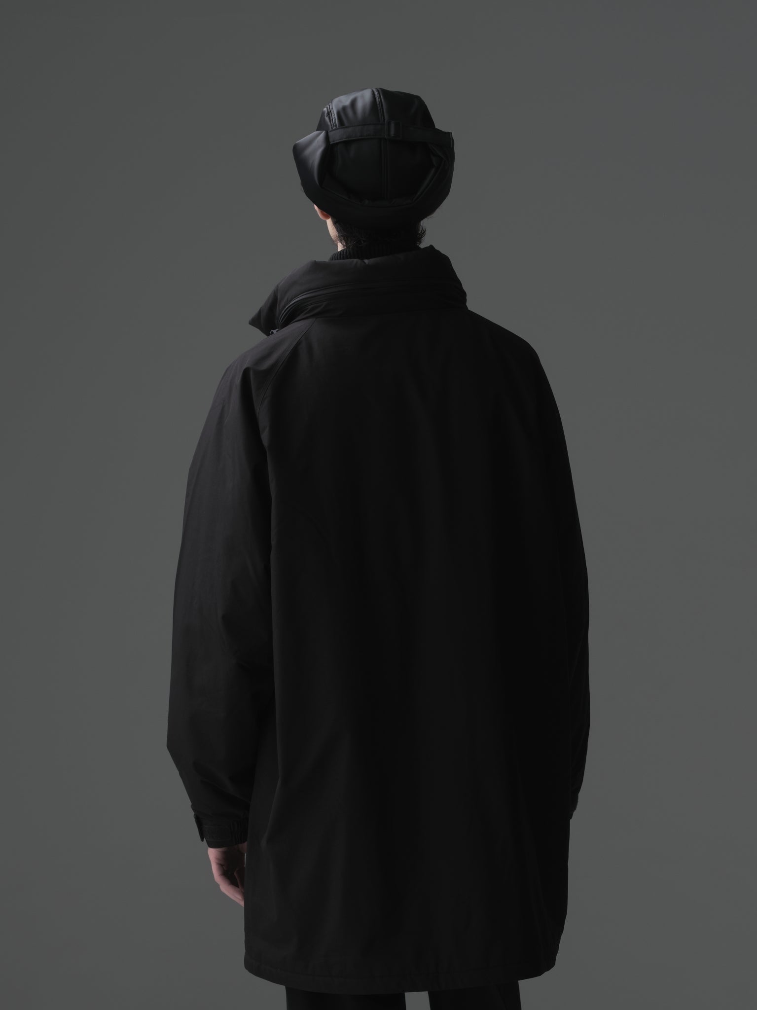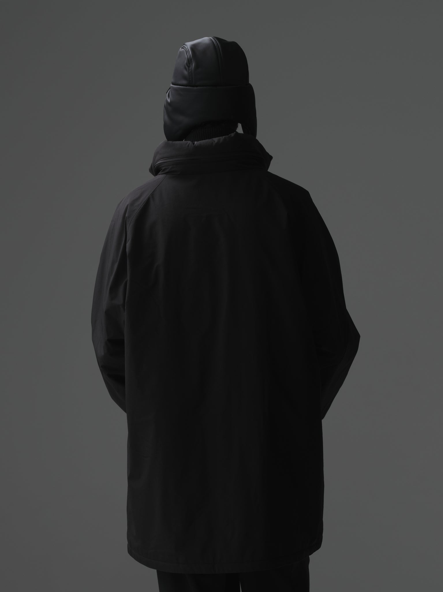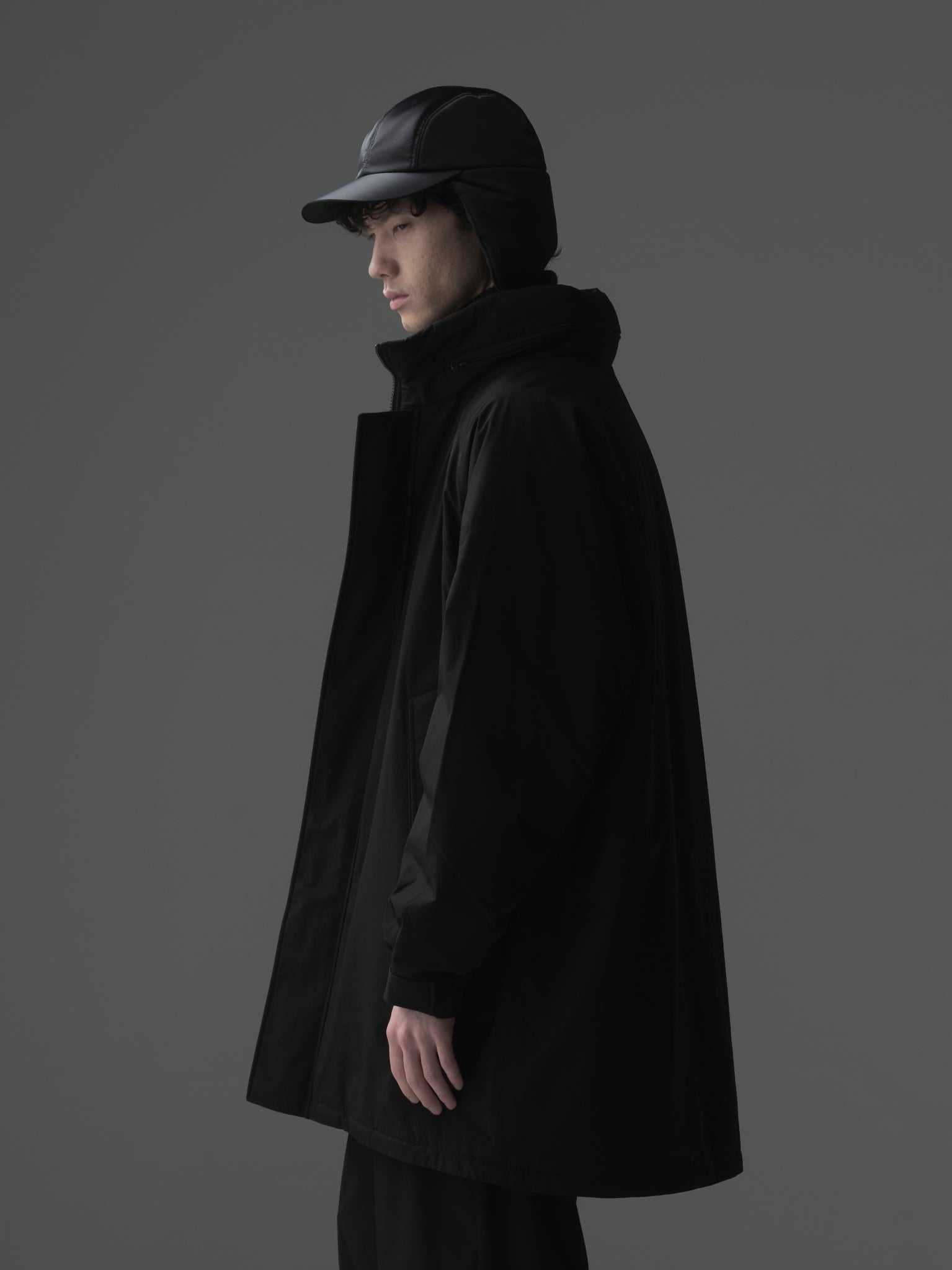 ベースはリモンタ生地にシンサレート中綿芯を組み合わせた、モードでありながら暖かく柔らかな素材を使用しています。内側も同素材のナイロンでソリッドなデザインに落とし込みました。DARK GREENは大理石をイメージし、オリジナルでプリントしています。