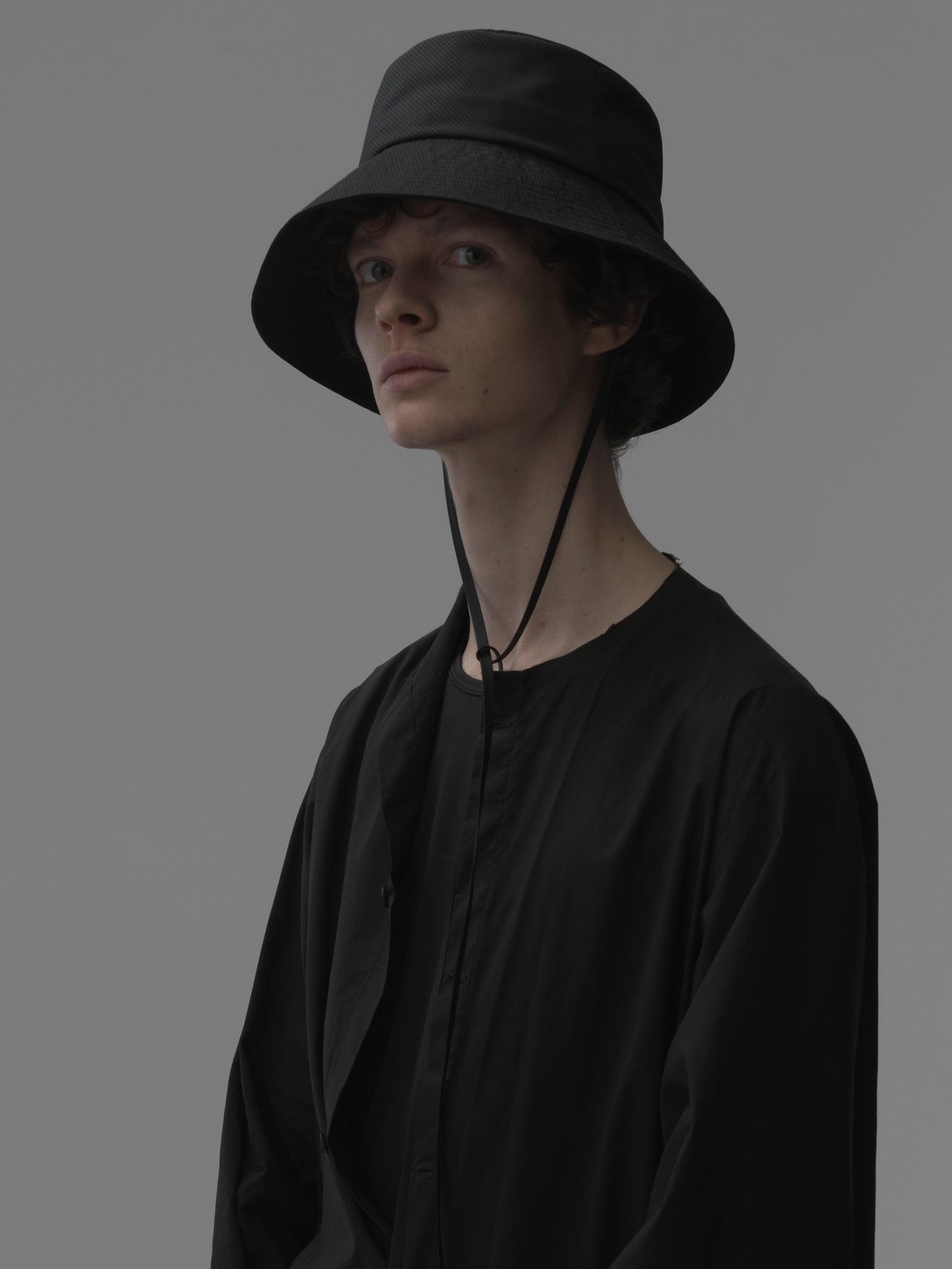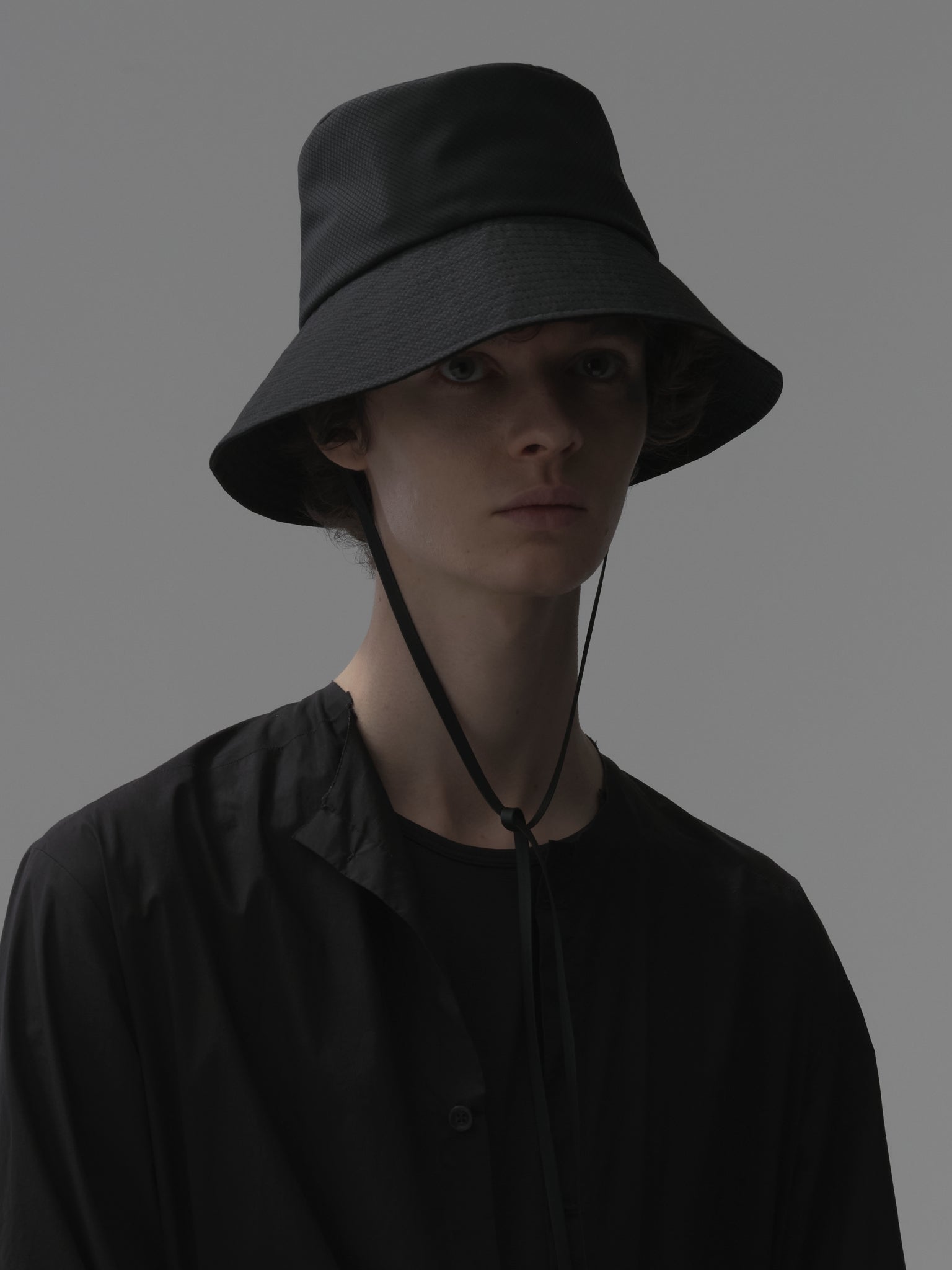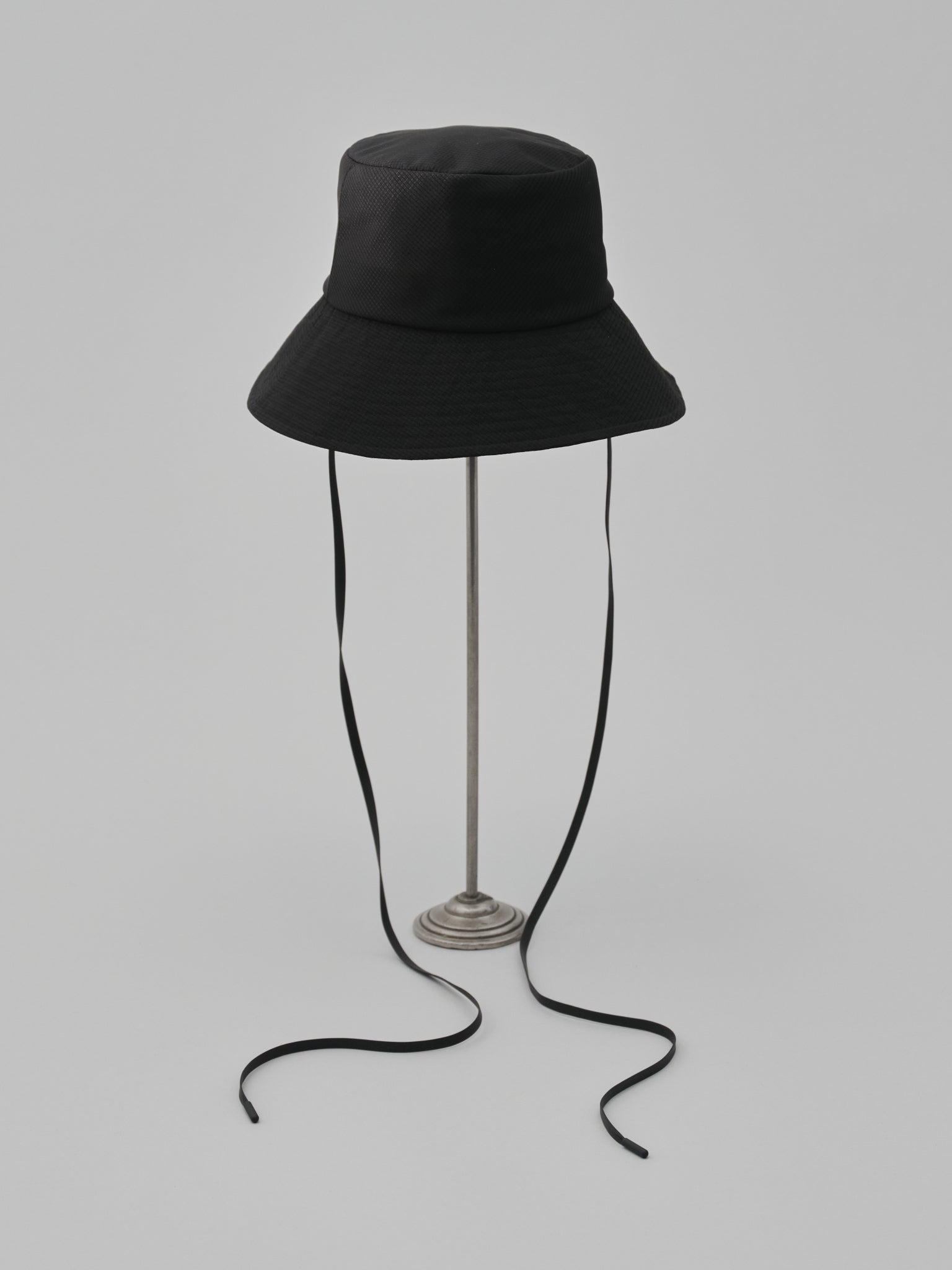 光が反射する湖水面のイメージをぼかし柄で描き、 通気性の良いメッシュ素材にプリントした、オリジナルファブリックのハットになります。 ブラックも深いブラックにこだわり、黒生地にさらにプリントし、アウトドアでも品の良さを感じられます。 取り外し可能なレザーのドローコードは金具もマットブラック。 手洗いの際は、付属のコードを外し、お水で優しく洗った後形を整えて乾かして下さい。