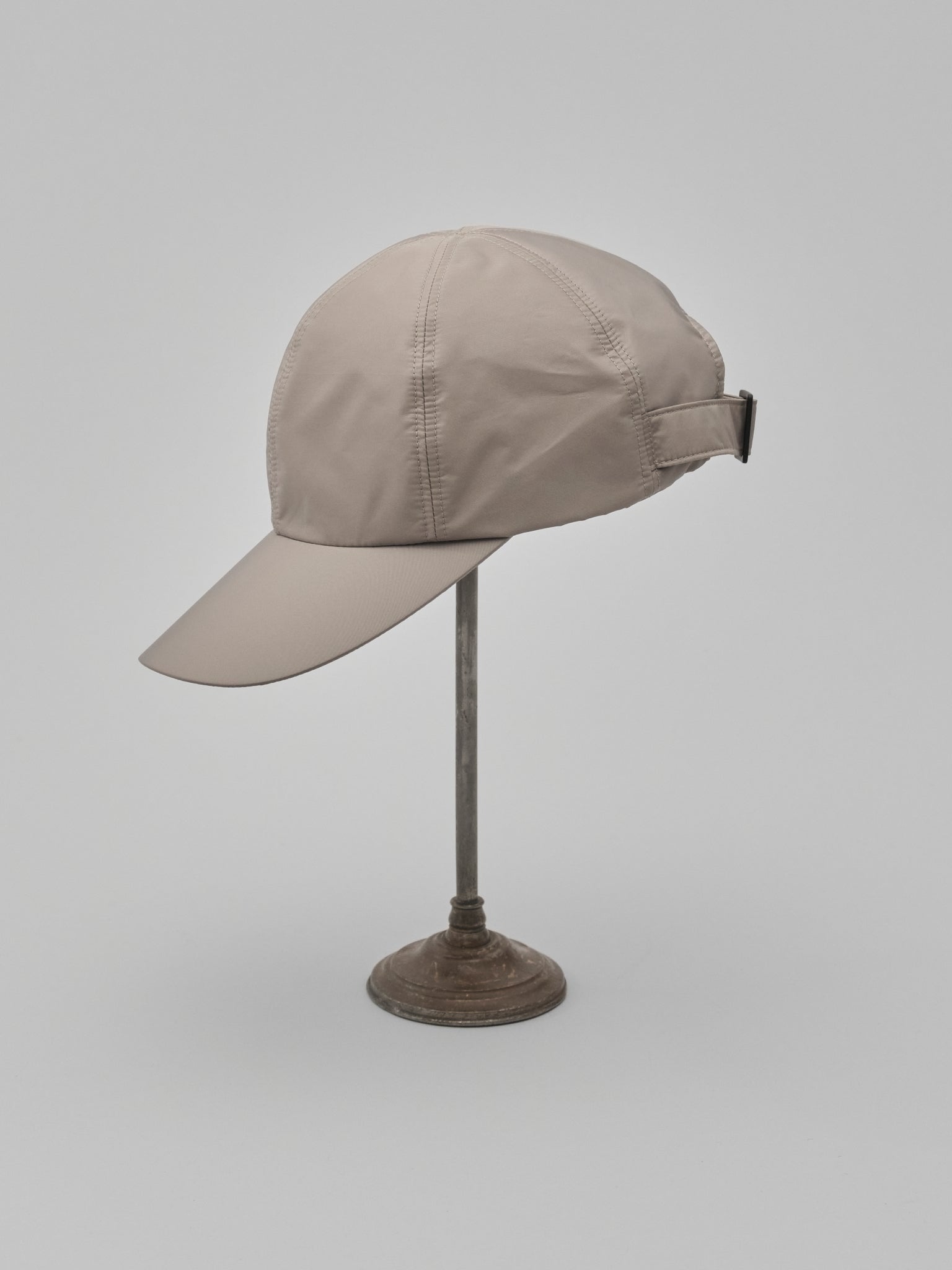 イタリア本場のリモンタナイロンを採用。 軽く、防水効果と耐久性を兼ね備えながらも、高級感が特徴のリモンタを使用することで、機能的かつ高級感のあるCAPに仕上がっています。 また、他のCAP品番同様サイドからベルトが出ているデザインとなっており、サイズフリーに被っていただけます。