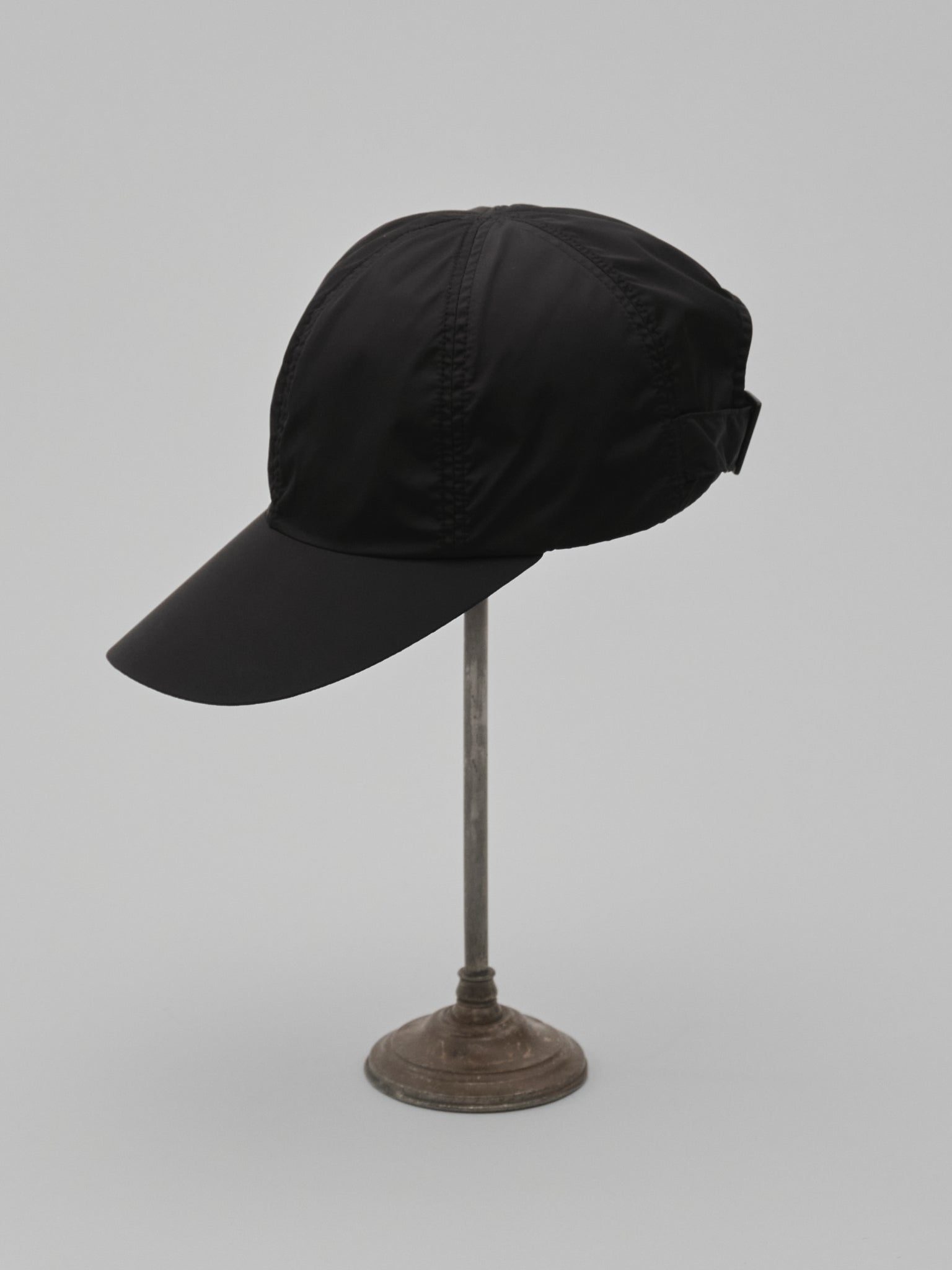 イタリア本場のリモンタナイロンを採用。 軽く、防水効果と耐久性を兼ね備えながらも、高級感が特徴のリモンタを使用することで、機能的かつ高級感のあるCAPに仕上がっています。 また、他のCAP品番同様サイドからベルトが出ているデザインとなっており、サイズフリーに被っていただけます。