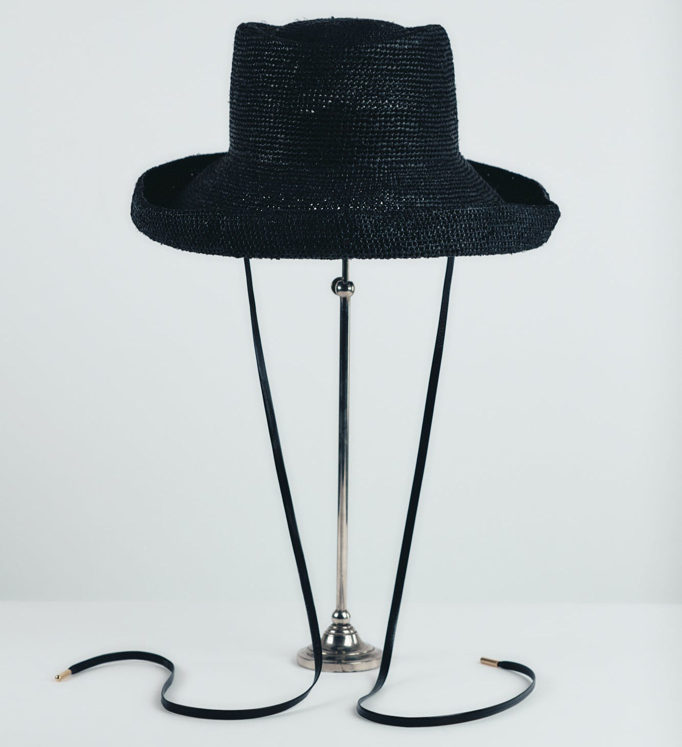 定番でお作りしているラフィア素材のクロッシェ帽子をリニューアル。 一つ一つ丁寧に手編みされたラフィアの素材はより細かく繊細な繊維を選定。 100年以上前のアンティークのフォルムを活 かしたシンプルかつモダンなデザインに落とし込み、 カジュアルすぎず、モードにも被れる大人の女性に向けたハットになっている。 附属の巾着に入れて、クルッと丸めて持ち歩き可能。保管の際は形を整えて通気性の良い場所で保管。レザーのドローコードは取り外し可能。*ESSENTIAL LINE