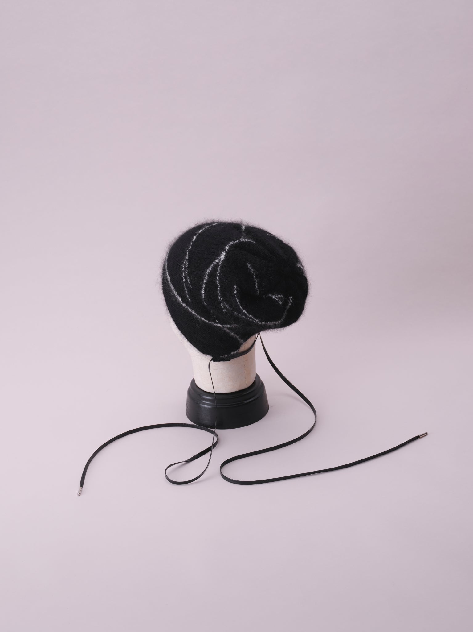 キッドモヘアにシルクの光沢が美しい糸を使用し、今期のイメージである大理石柄を作り、品のある大人な女性に向けた"ラグジュアリーなニットキャップ"を目指し作製しました。Silkの光沢感とMohairの温かみ混ざるカジュアルかつ上品なアイテムとなっています。