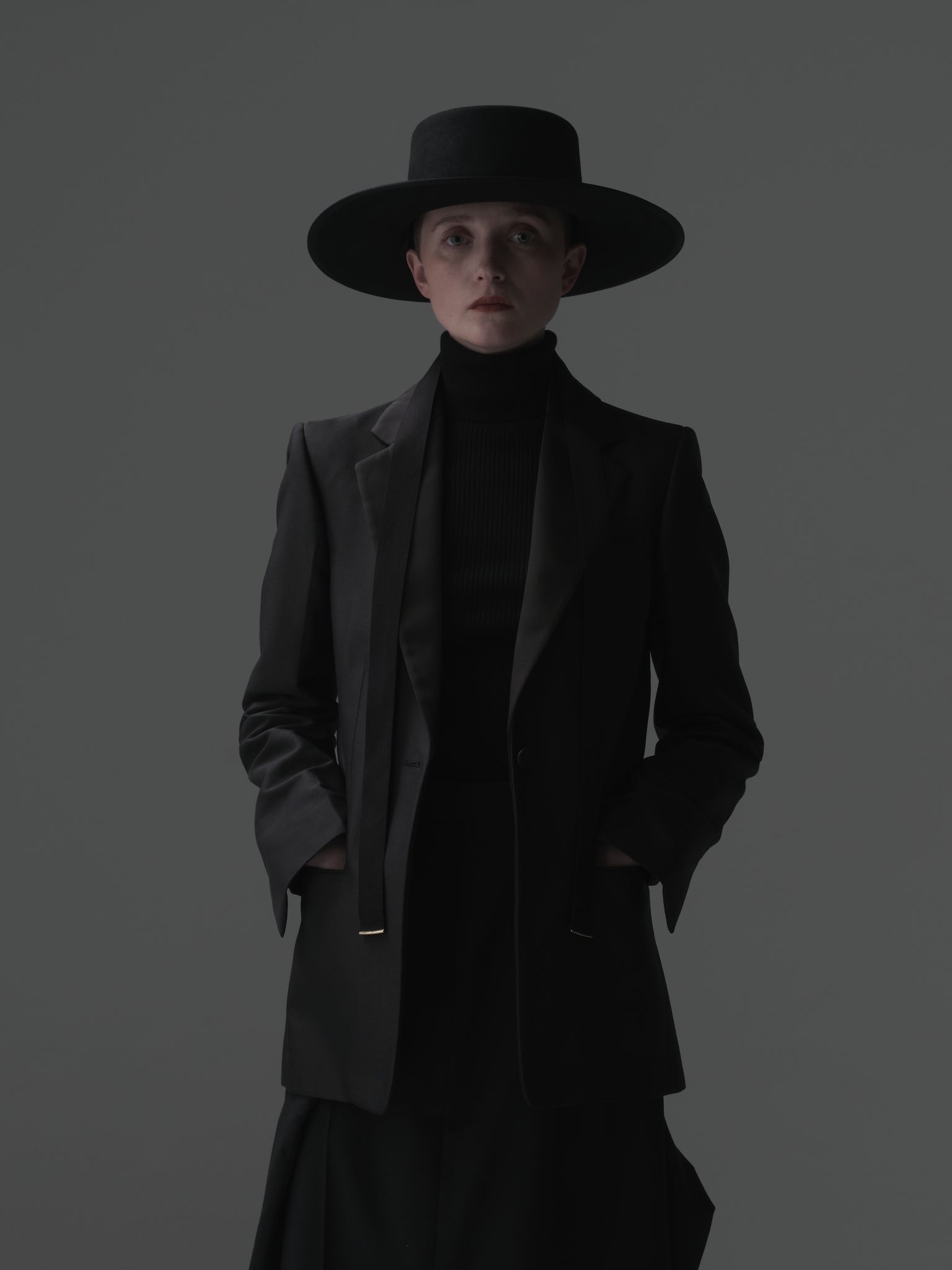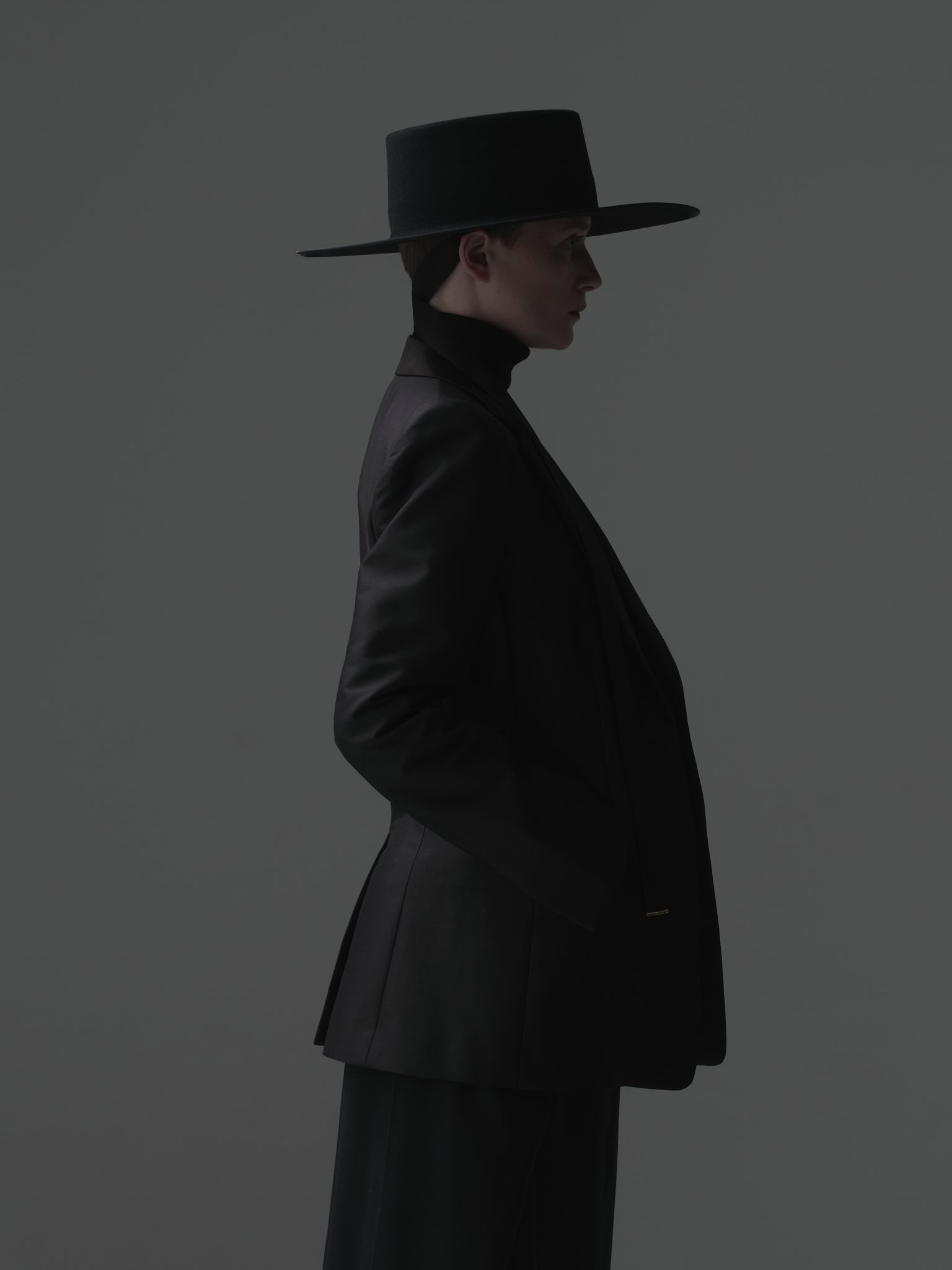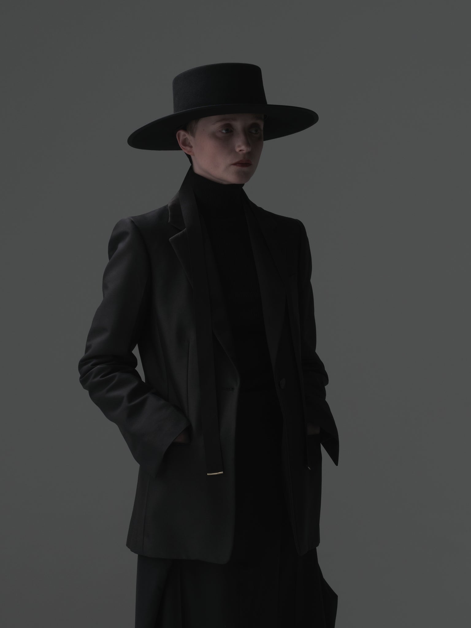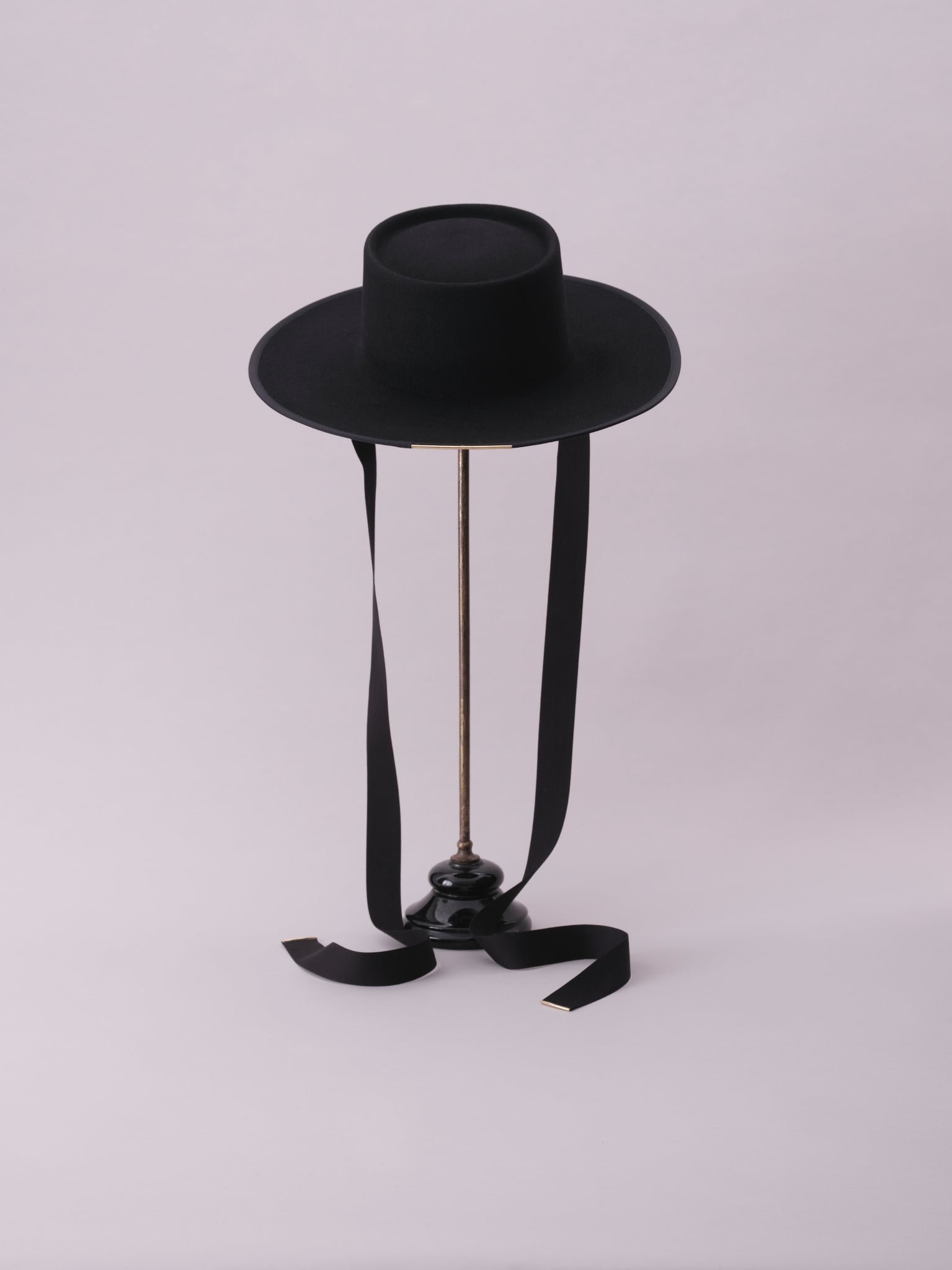 ポルトガル産の別注フェルト帽体を使⽤した、ブランドの顔となっているAmish Hat。 ⾼級感ある素材感を活かし、オーセンティックでシ ンプルなフォルム。 そしてブランドのシグネチャーとなる2本のリボンが 附属されています。 ブリムの後ろ中⼼についたアイコニックな⾦具がバ ックスタイルのポイントになっています。