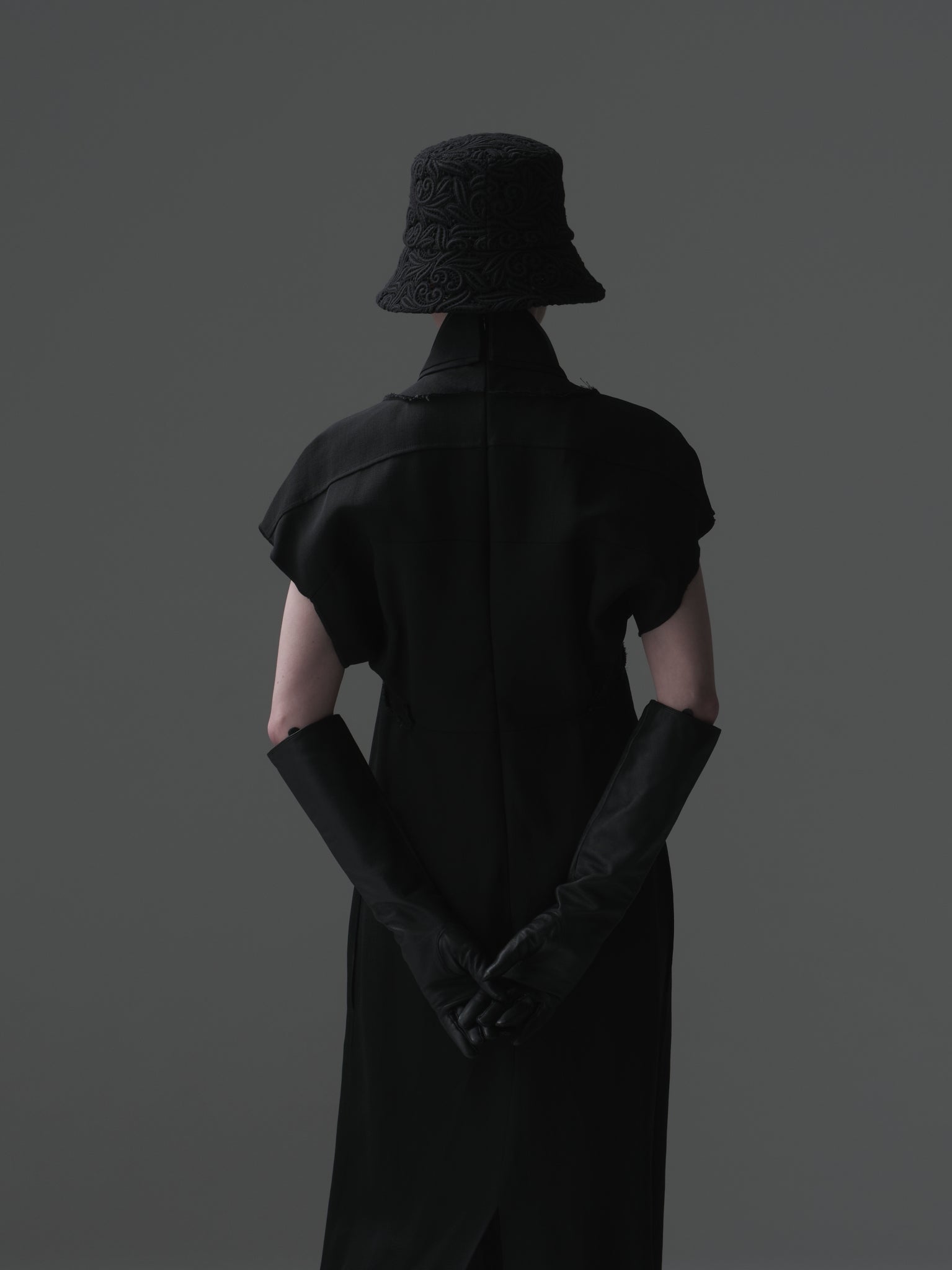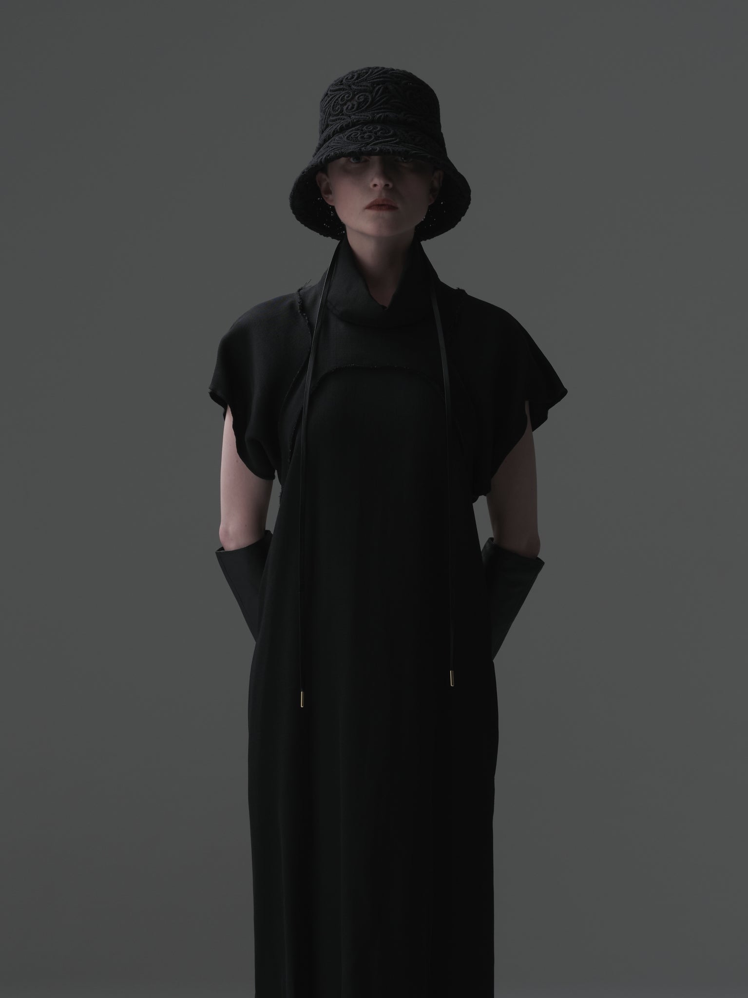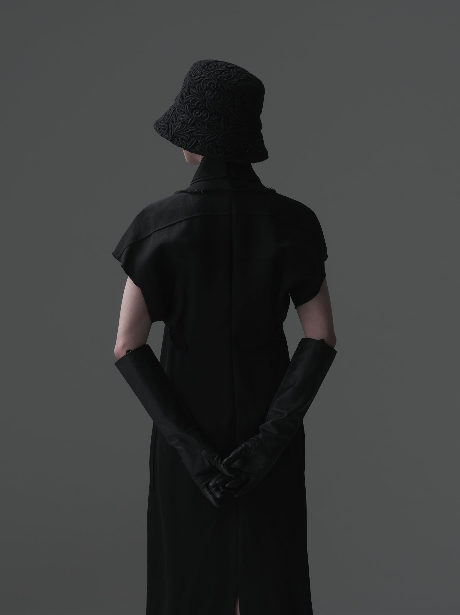 ボリュームのあるラグジュアリーなケミカルレースを縫製し、芯を使わず丁寧に一つ一つ型入れして仕上げた、ハットはまるでクチュールのようです。レースの透け感が落とす影にラグジュアリーさが漂っ ています。リボン自体も取り外し可能なので気分に合わせてハットのみの使用も可能です