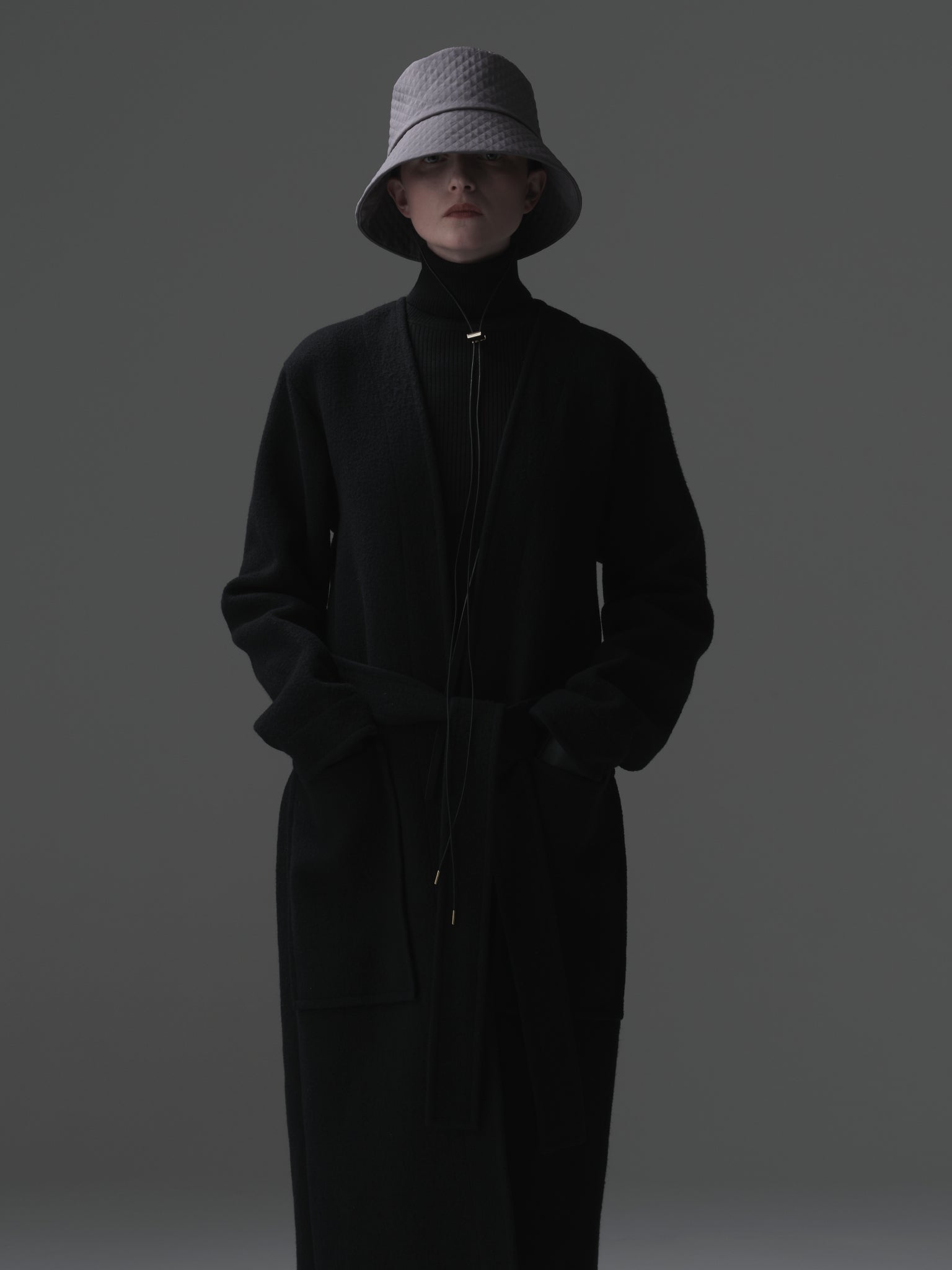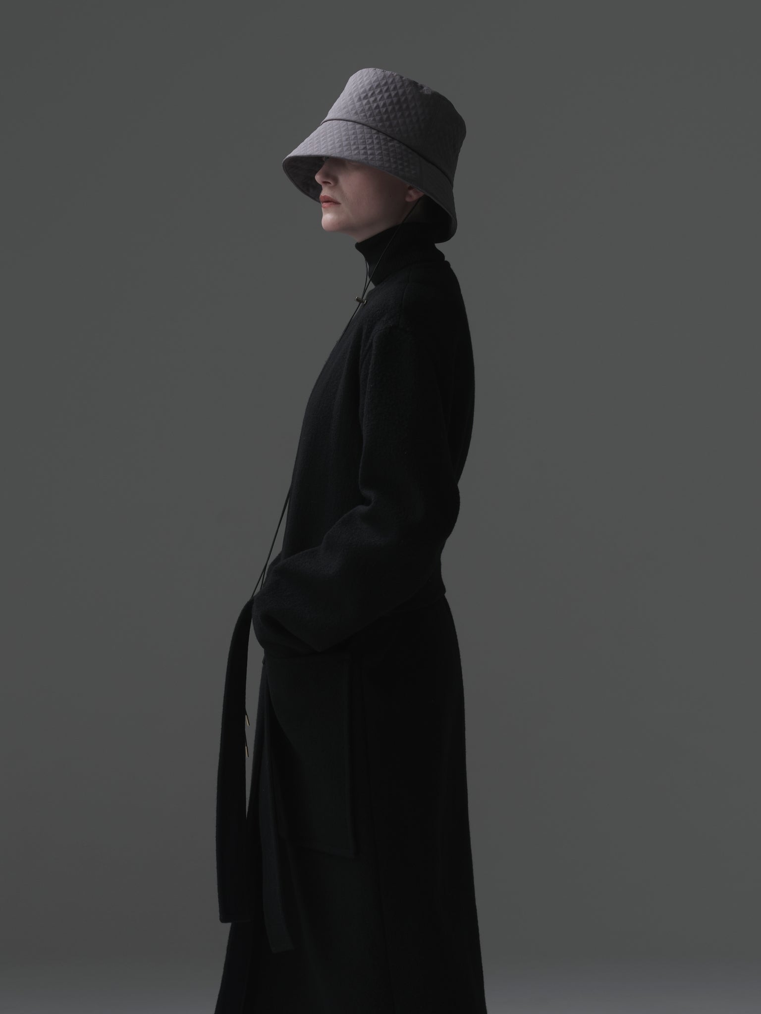 上品なキルティング素材を使用したバケットハットはカジュアルすぎずラグジュアリーな雰囲気もあります。あえてブリムにはステッチを入れないことで、シンプルで品のあるバケットハットを目指しました。コードは取り外しが可能でアジャスター付き。カジュアルな合わせにも対応出来ます。