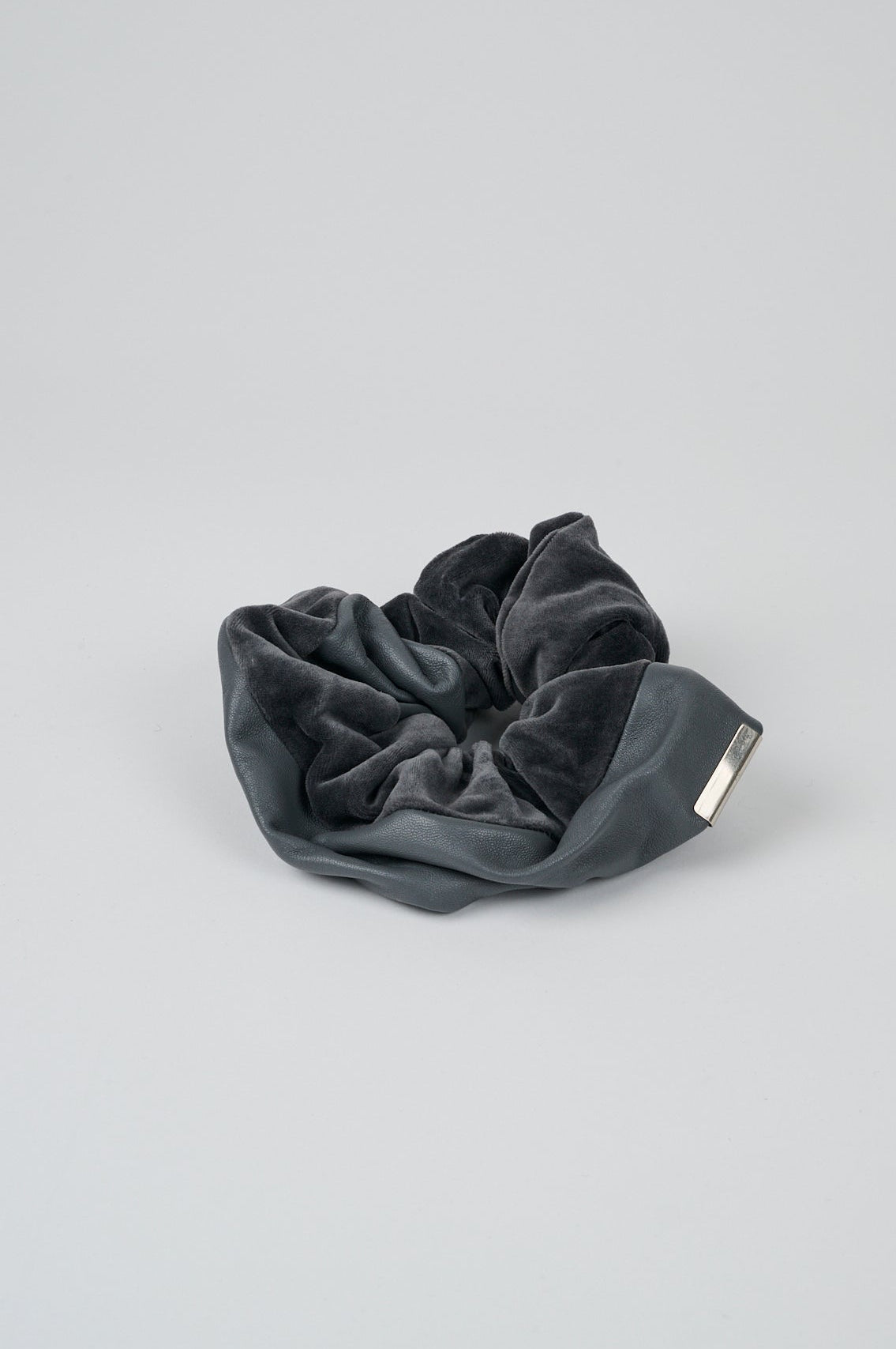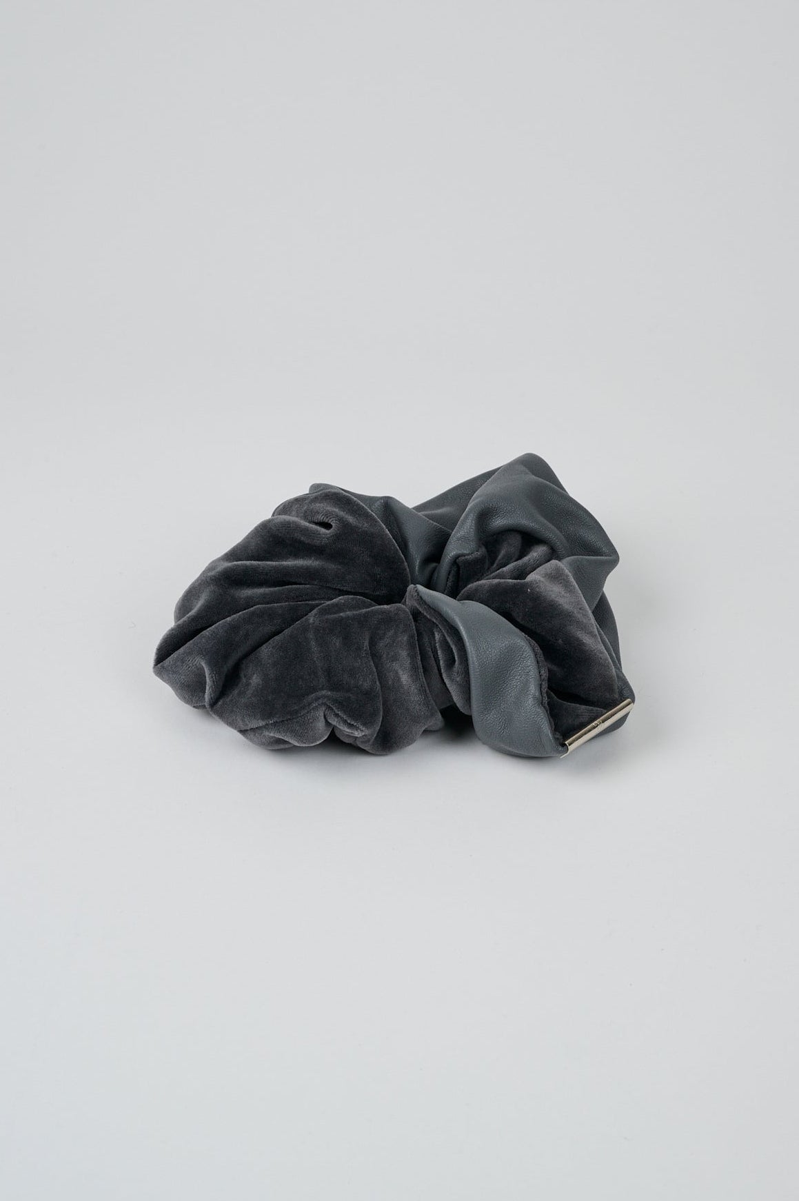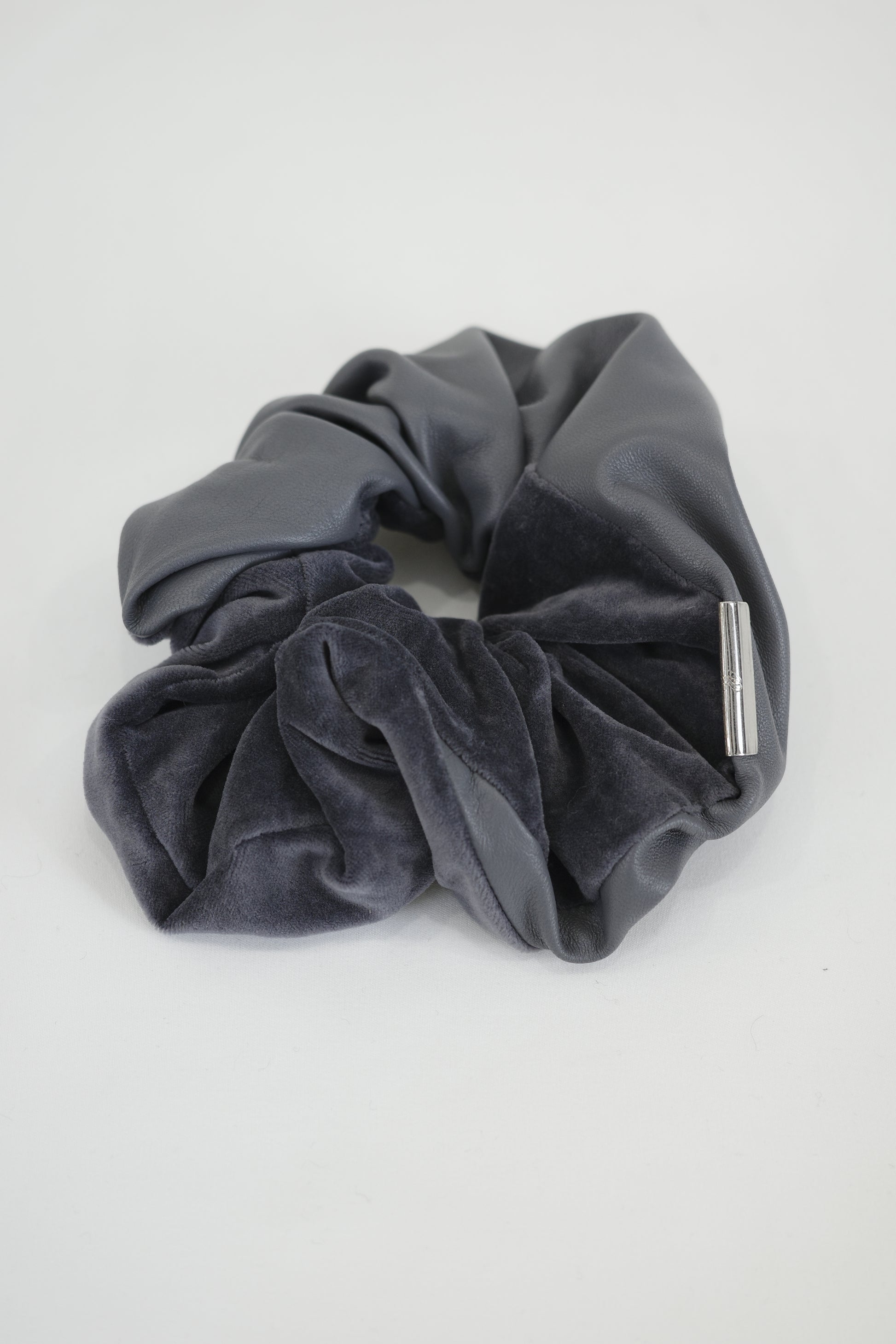 上質なベルベットとレザーのコンビがクールな印象の、大人の女性のためのシュシュ。