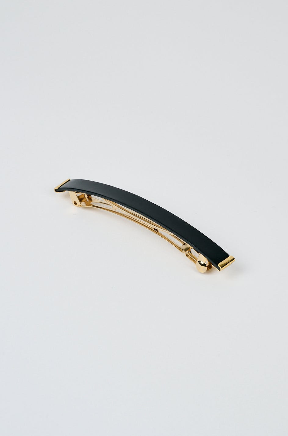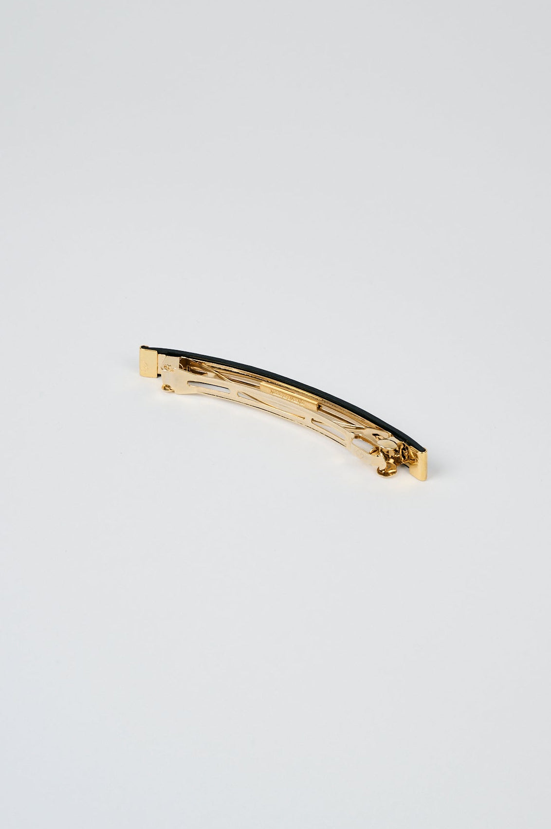 レザーと金具というブランドコンセプトに基づいて製作したバレッタ。
