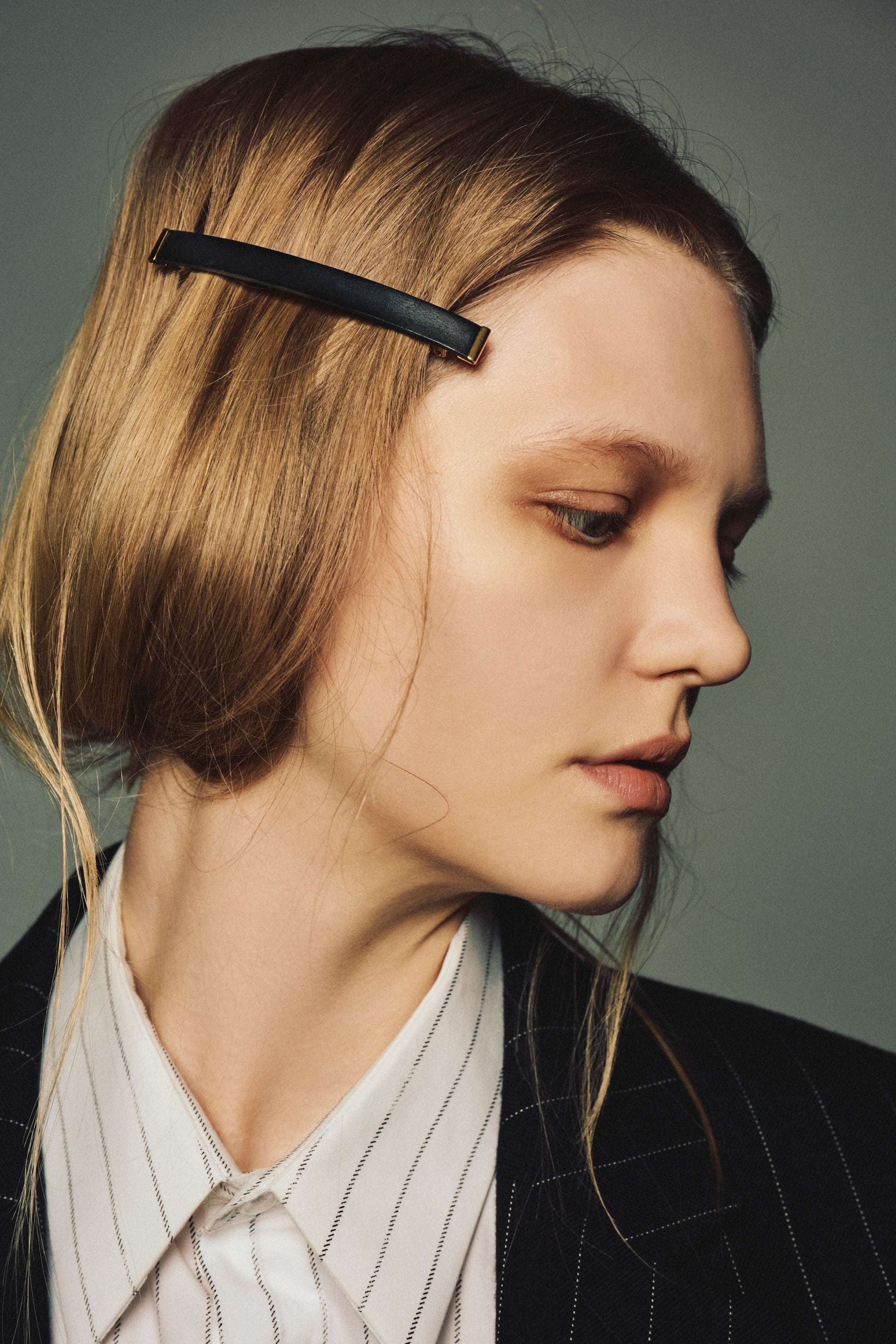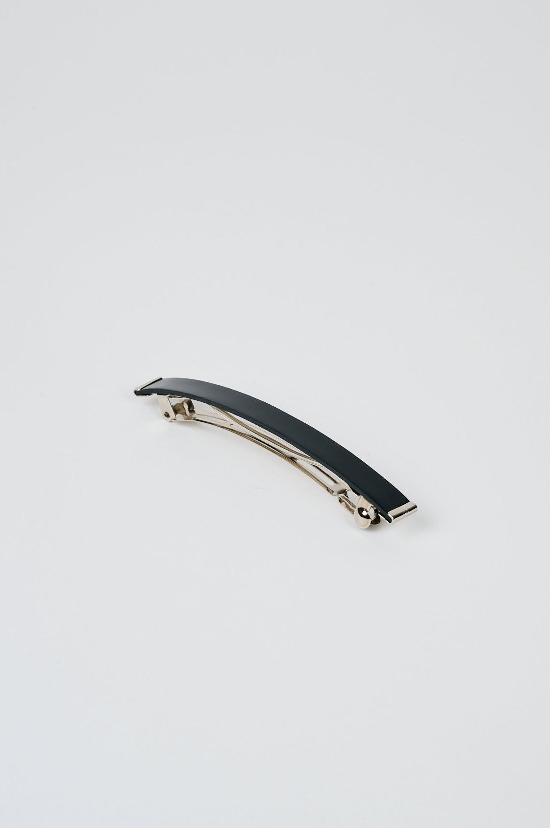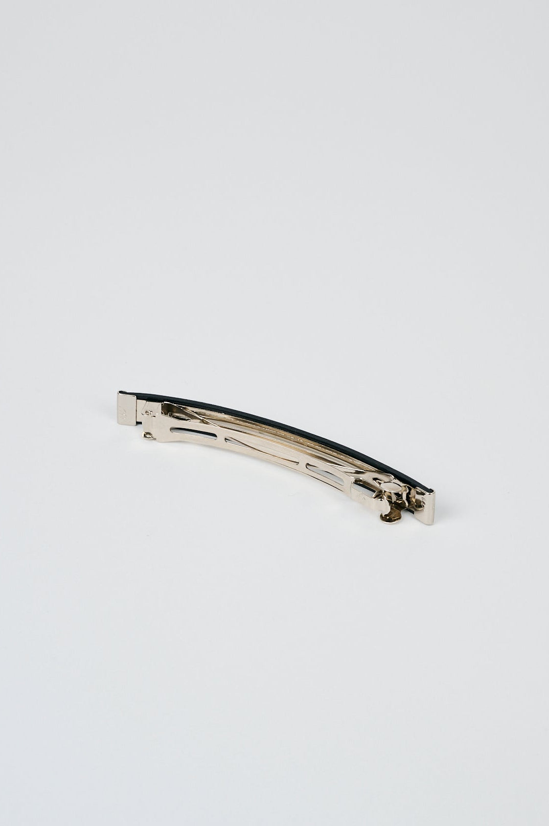 レザーと金具というブランドコンセプトに基づいて製作したバレッタ。
