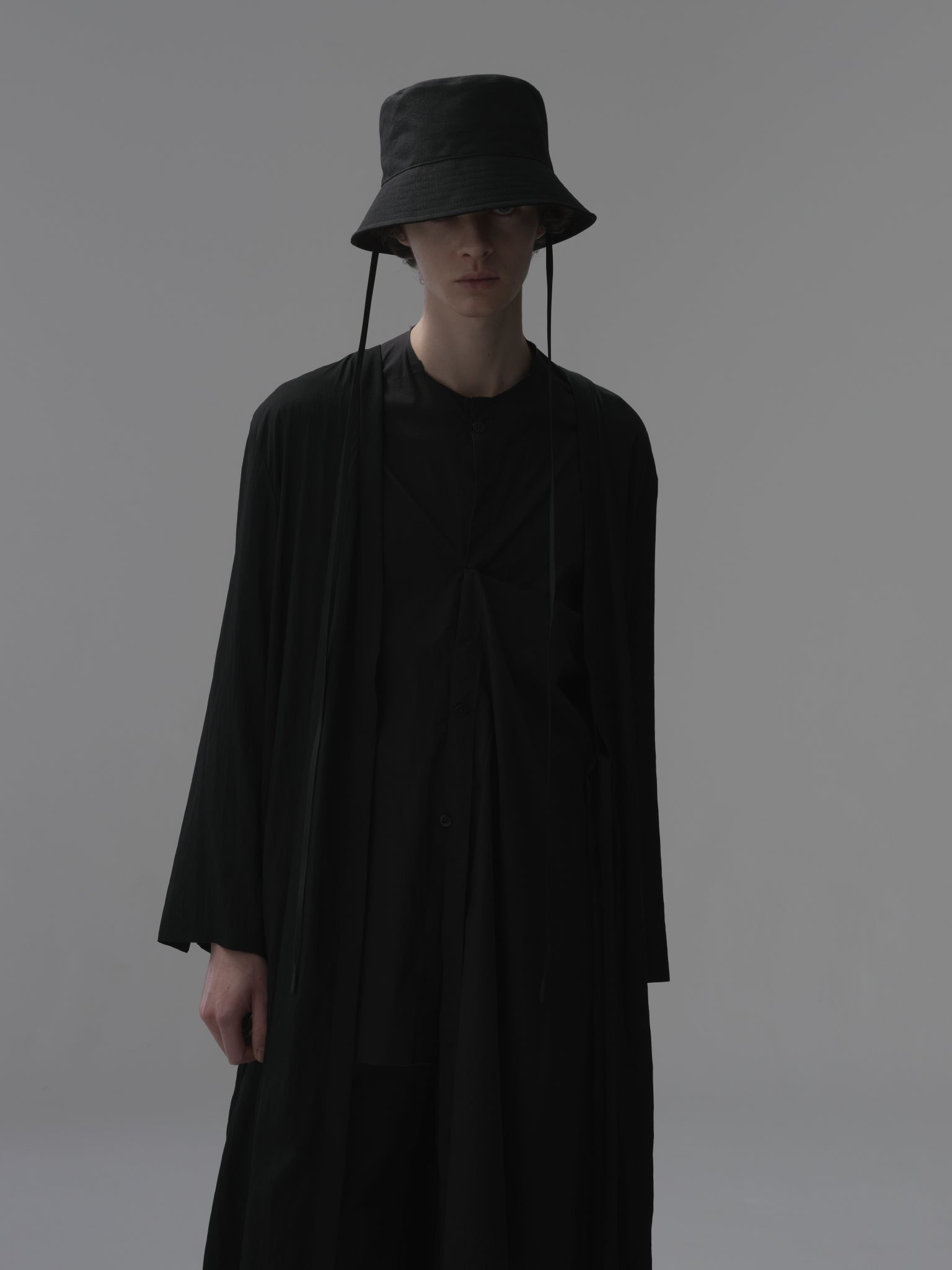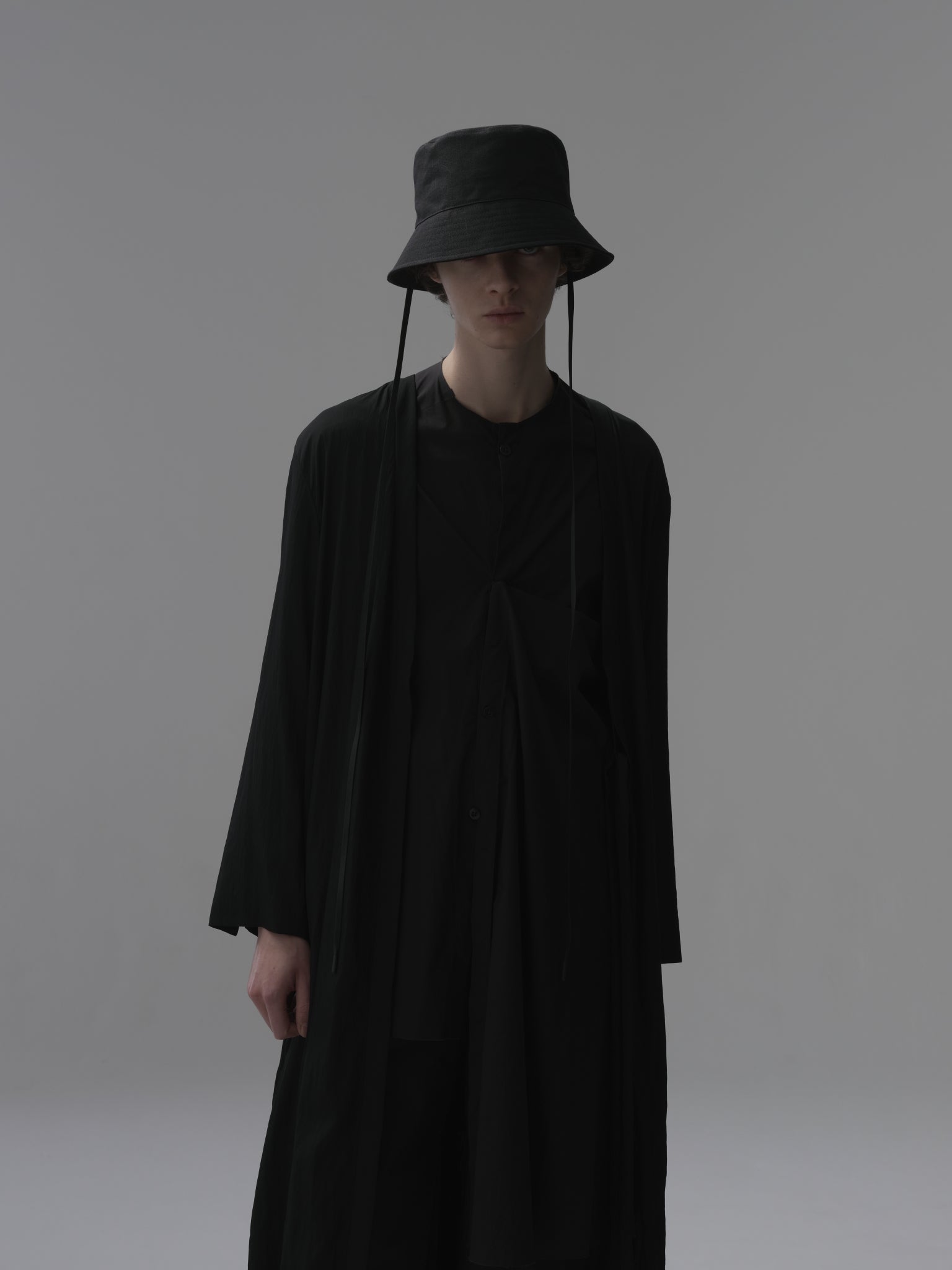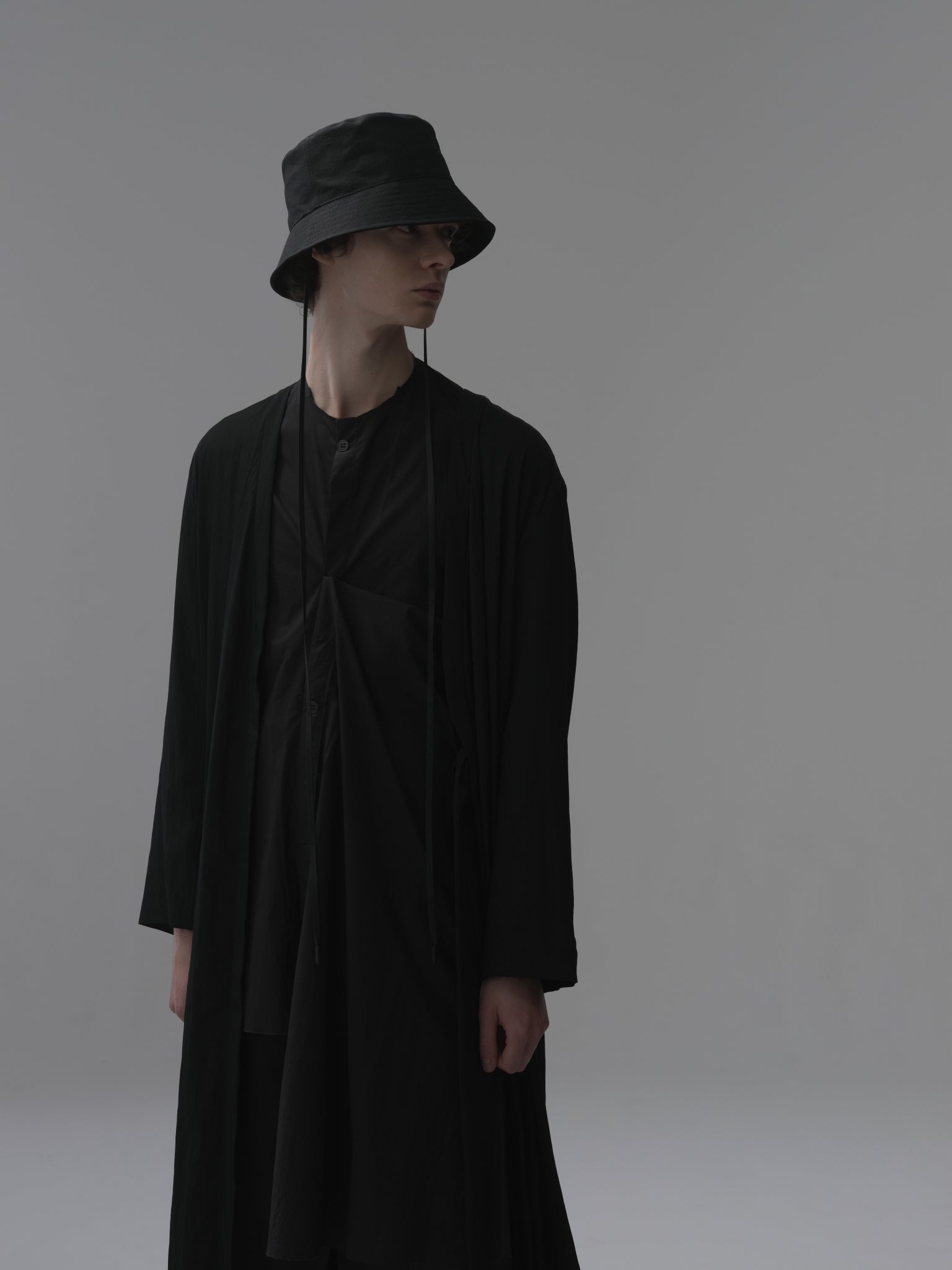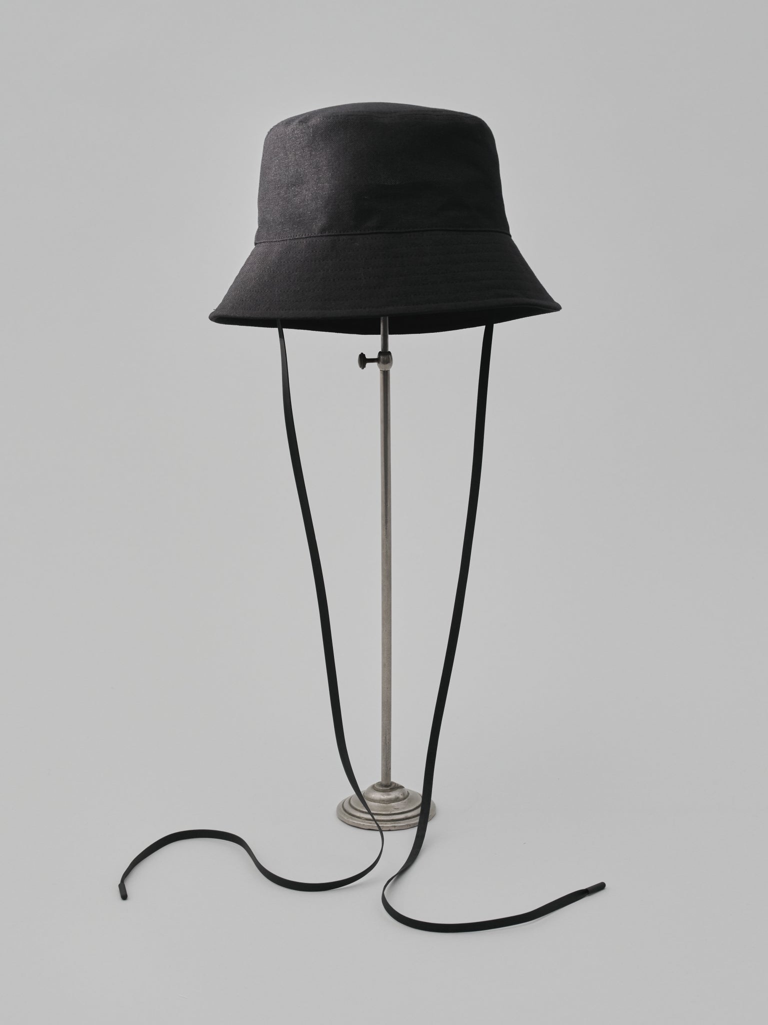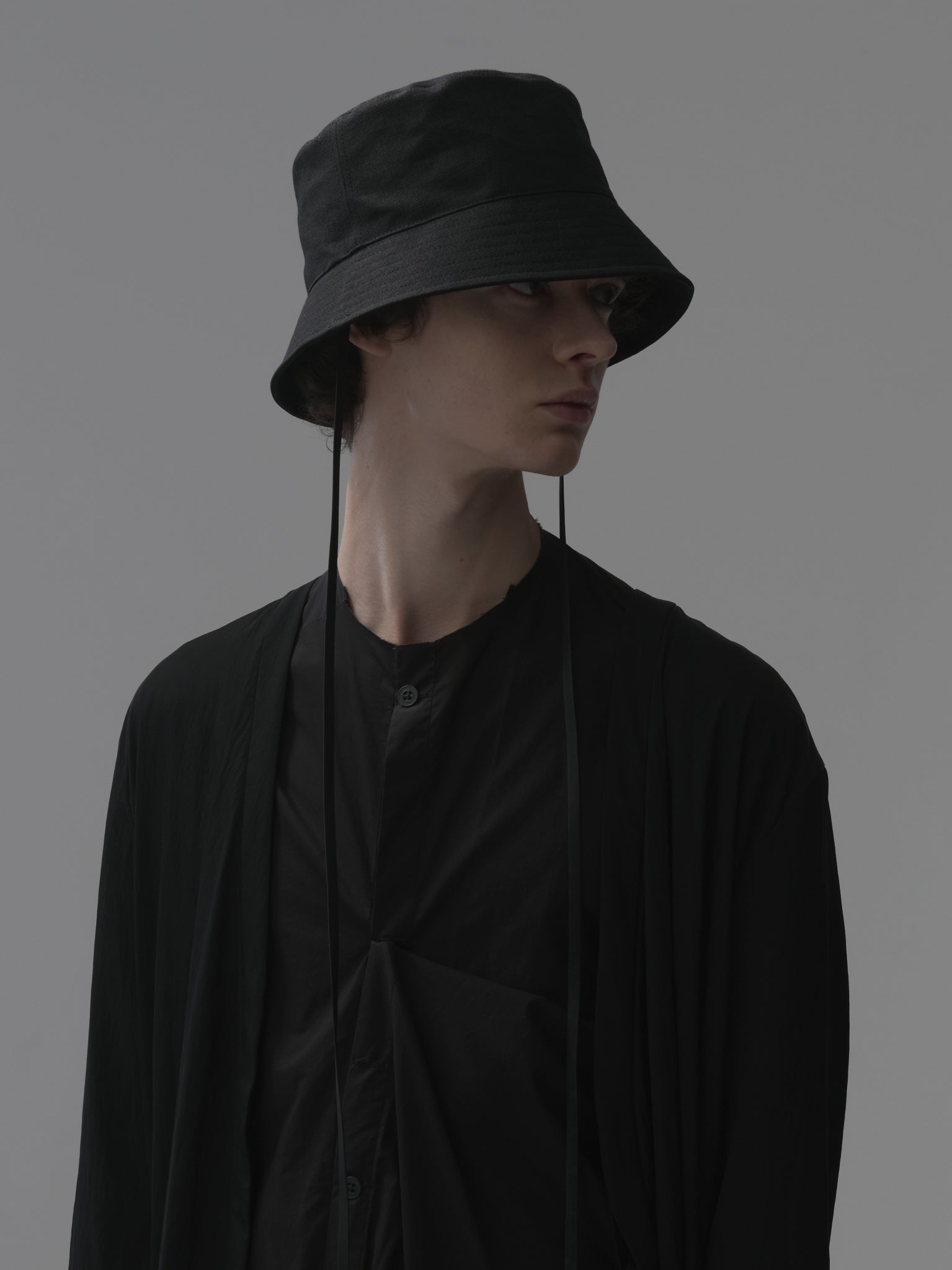 Rodan capと共地の和紙素材を仕様したバケットハット。 軽く、透け感があり、和紙ならではの風合いが特徴。 こちらもキャップ同様手洗いが可能になります。 附属のコードは今季オリジナルのマットなリアルレザーのドローコードになります。 先端の金具までマットになった、ソリッドなコードがポイントとなります。 コードは取り外し可能です。