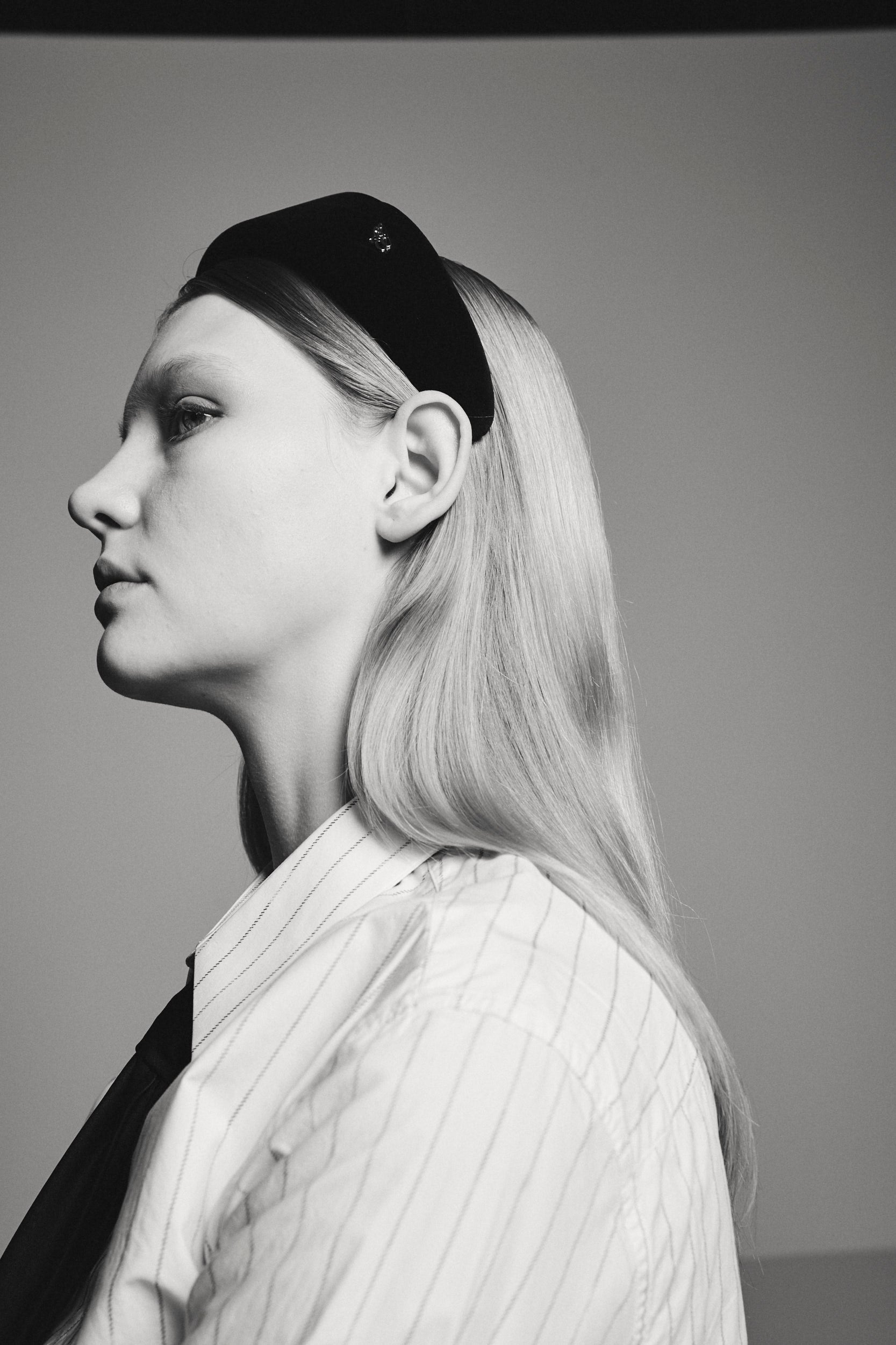 彫刻的なフォルムが美しい、大人の女性のためのカチューシャ。
