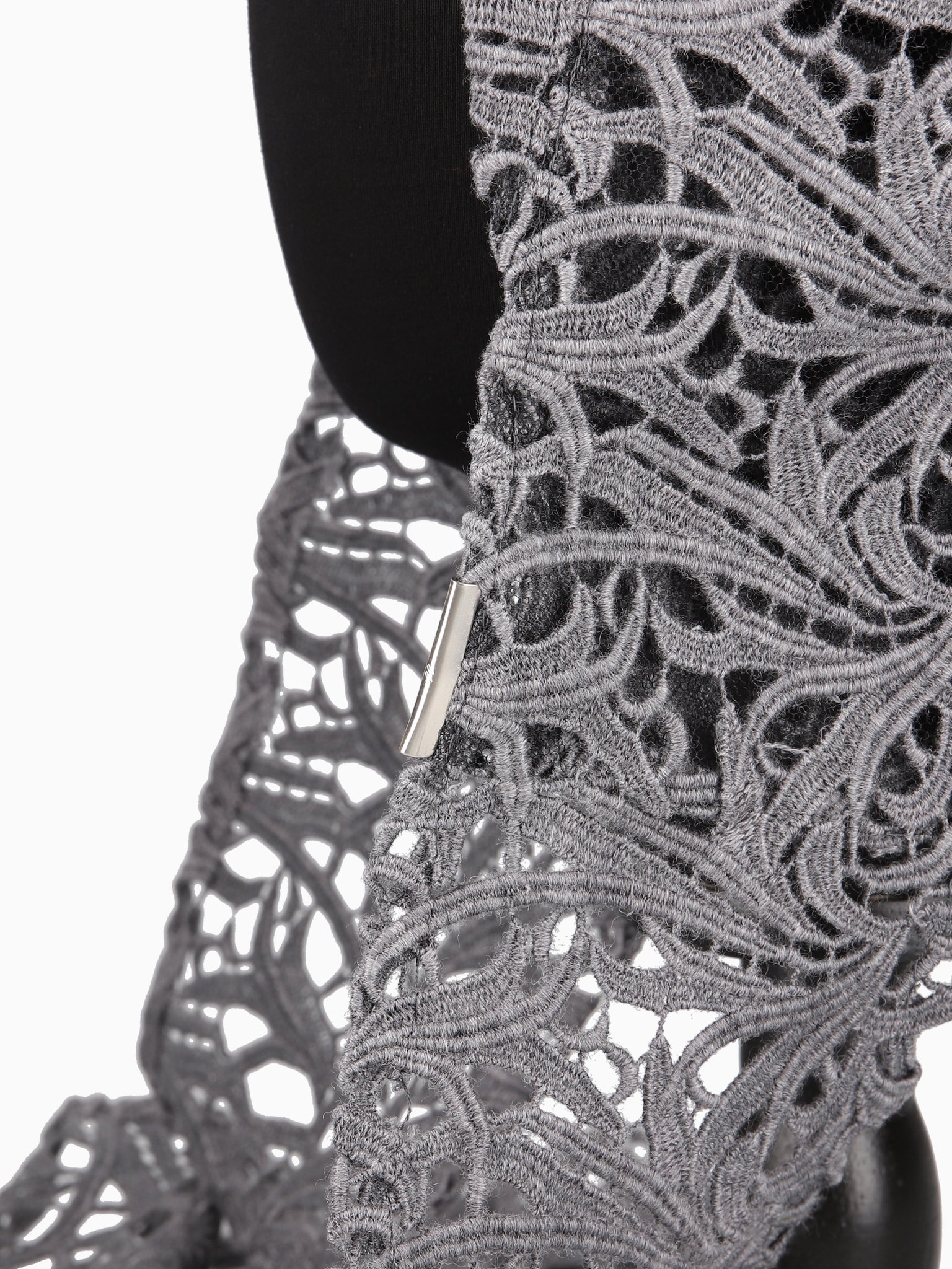 幾何学的なキュビズムの原型となったレリーフのモチーフの柄をイメージし、オリジナルでレースを作りました。糸からセレクトし、イタリアの紡績メーカー『ゼニア』のシルクのような光沢感とカシミヤのような肌触りの両方を兼ね備えている最高級のウール糸を使用しています。暖かみもありながらソリッドな印象も感じられます。フォルムは洋服と一体化するような立体的なパターンでレースをふんだんに使用した存在感のあるフーディに仕上げています。